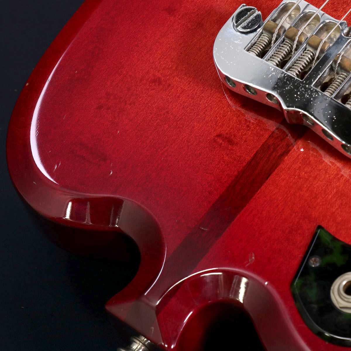 The bridge shape and fingerboard radius are different, so the string height cannot be lowered much. Nut/knob has been replaced and 1 strap pin has been changed to JimDunlop type. It shows signs of use (minor scratches, scuffs, scuffs and scratches from playing, picking marks, fogging of metal parts and screws, etc.).