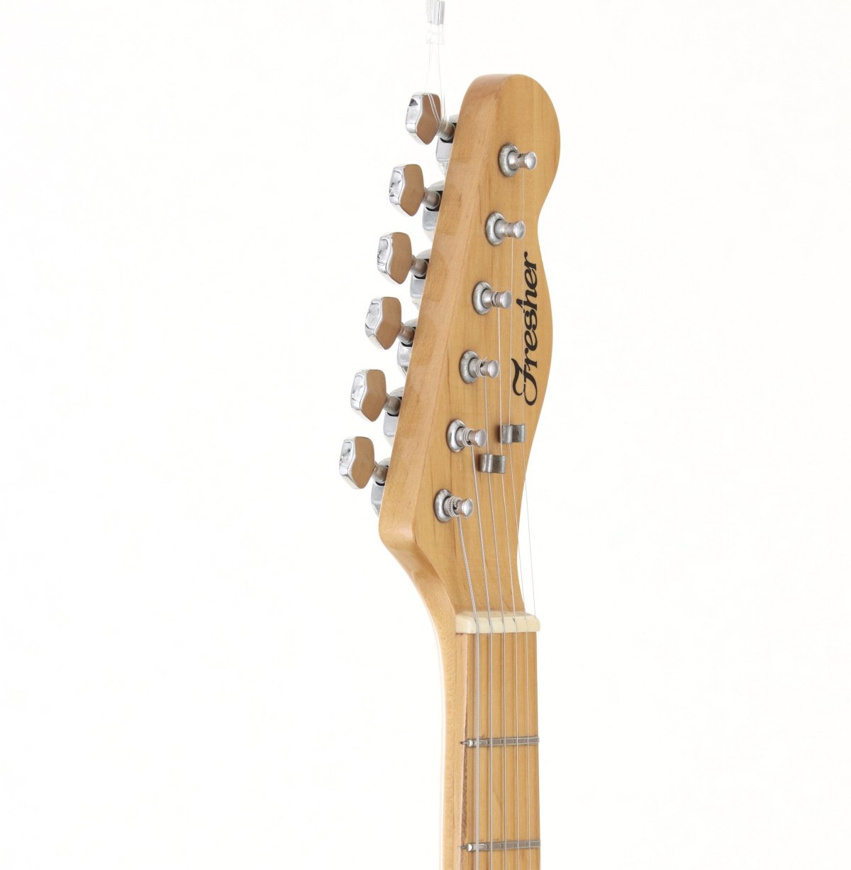 1970年代に「エフェクター内蔵ギター」等で知られるフレッシャーのTLタイプ。多くのモデルに採用されているランバーコア・ボディ、メイプル・ネック、貼りメイプル指板、ヘッドも張り合わせられており、ナット幅はジャズベースに近い39mm仕上げ、PUはフレッシャー・オリジナルシングルコイルx2、ピックガードは2プライ仕様になっています。