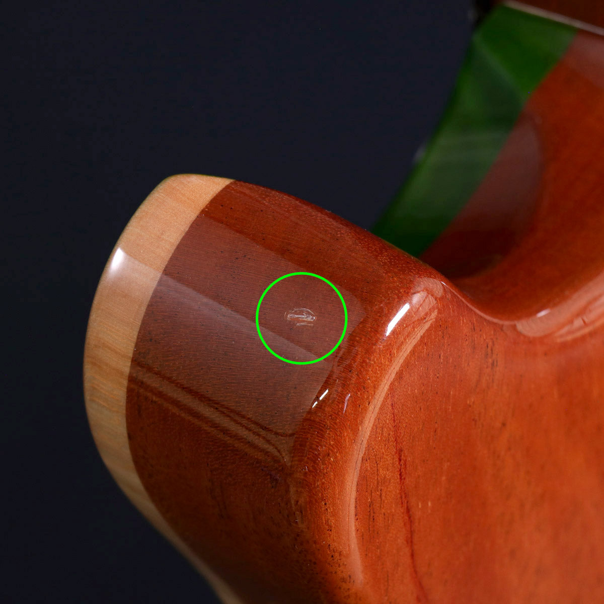 * トラスロッド、フレット残り、弦高等の記載がある場合は当社スタッフがセットアップ時に計測したものであり、気候、湿度等、環境の違いによる影響等で、変化が起こります。