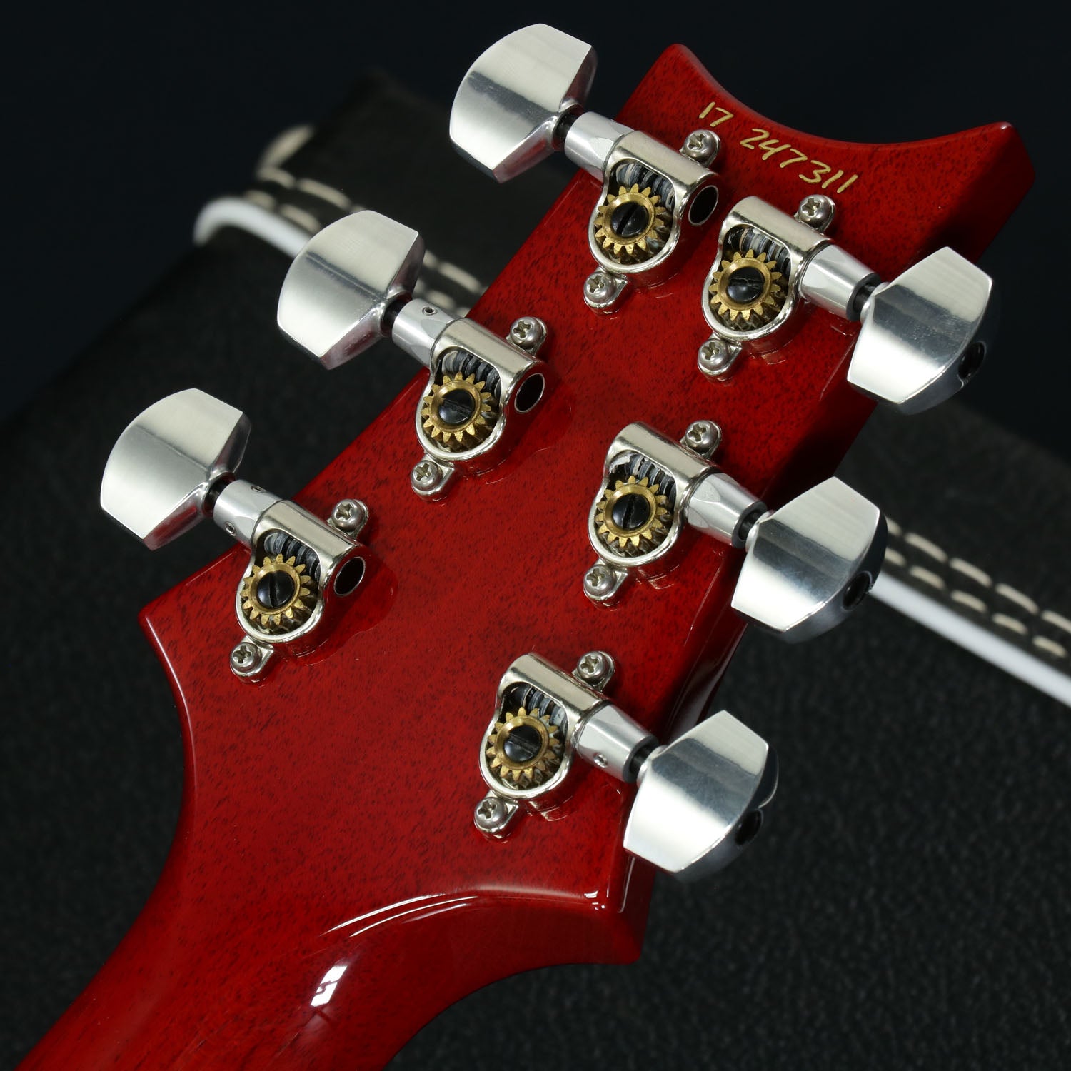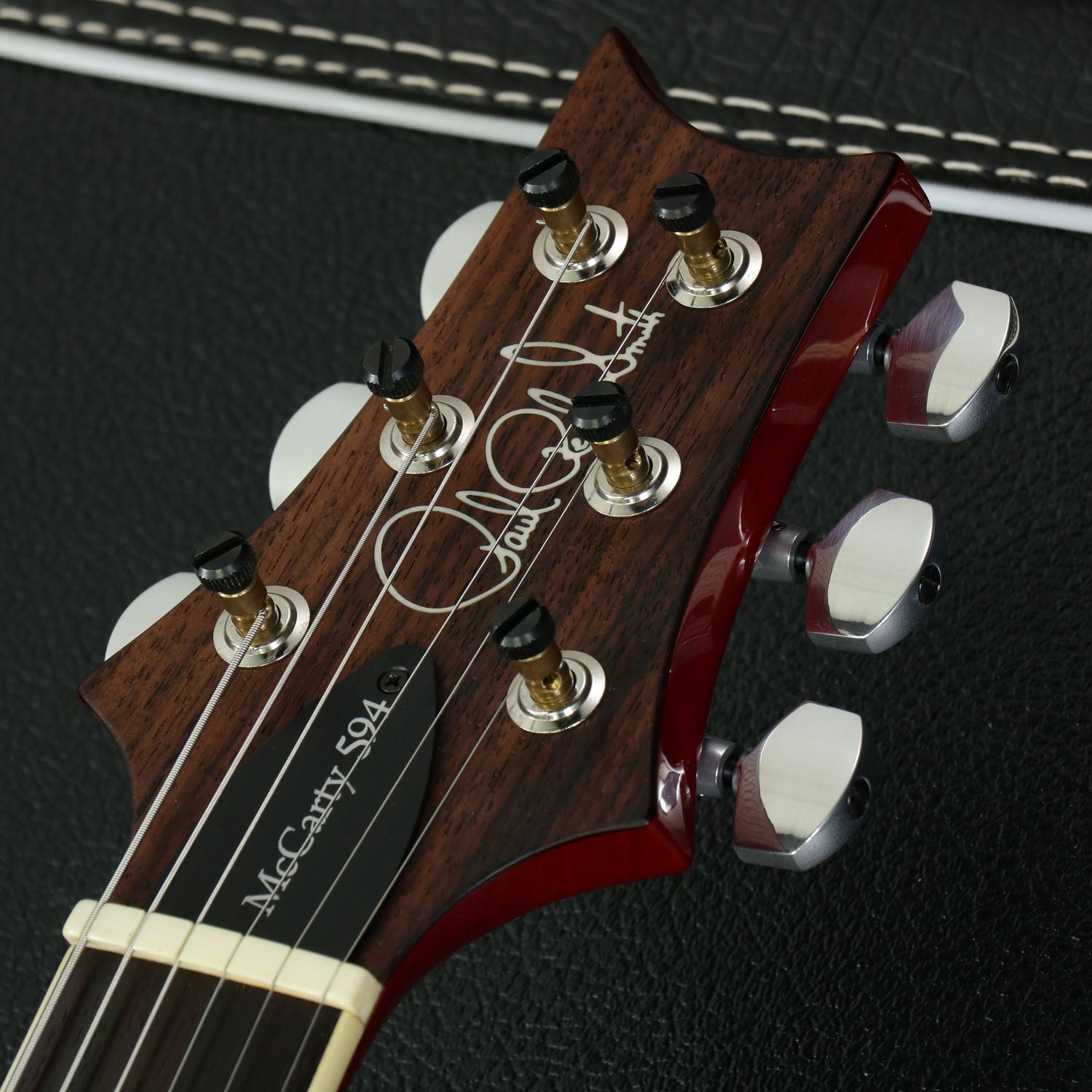 ポールリードスミス(PRS)ウッドライブラリー・マッカーティ594、2017年製です。CUSTOM24/22よりも厚みを持たせたボディは1キルトメイプル・トップ/マホガニー・バック、Pattern Vintageシェイプのマホガニー・ネック、バードインレイの施されたローズ指板、Tweaked Phase III ロッキングチューナー、PUは58/15 LTを搭載し、Tone-Pullでコイルタップ、PRS Two-Piece, Cast Zincブリッジを備えています。