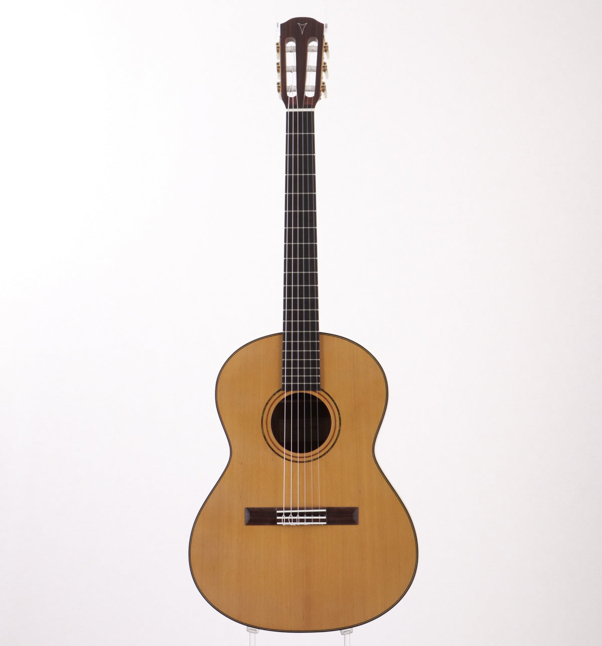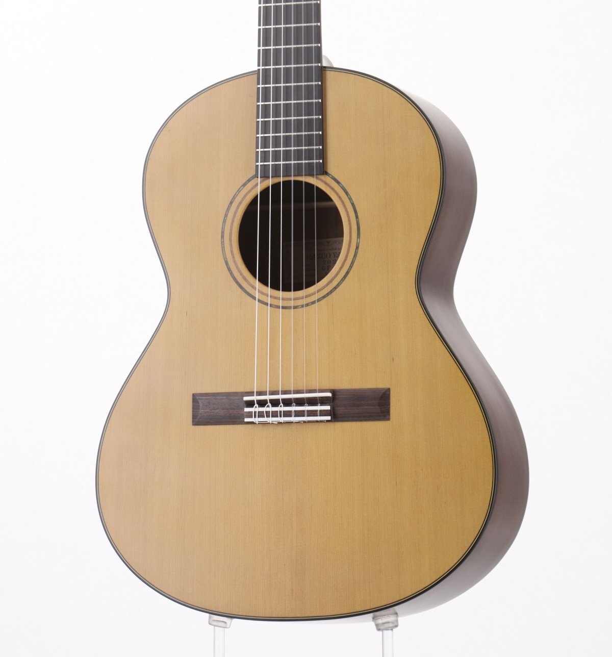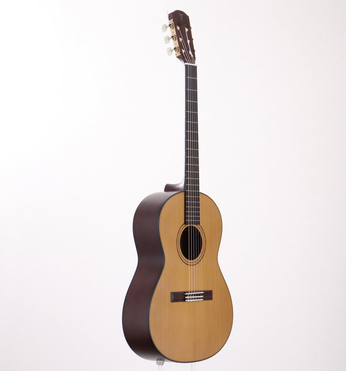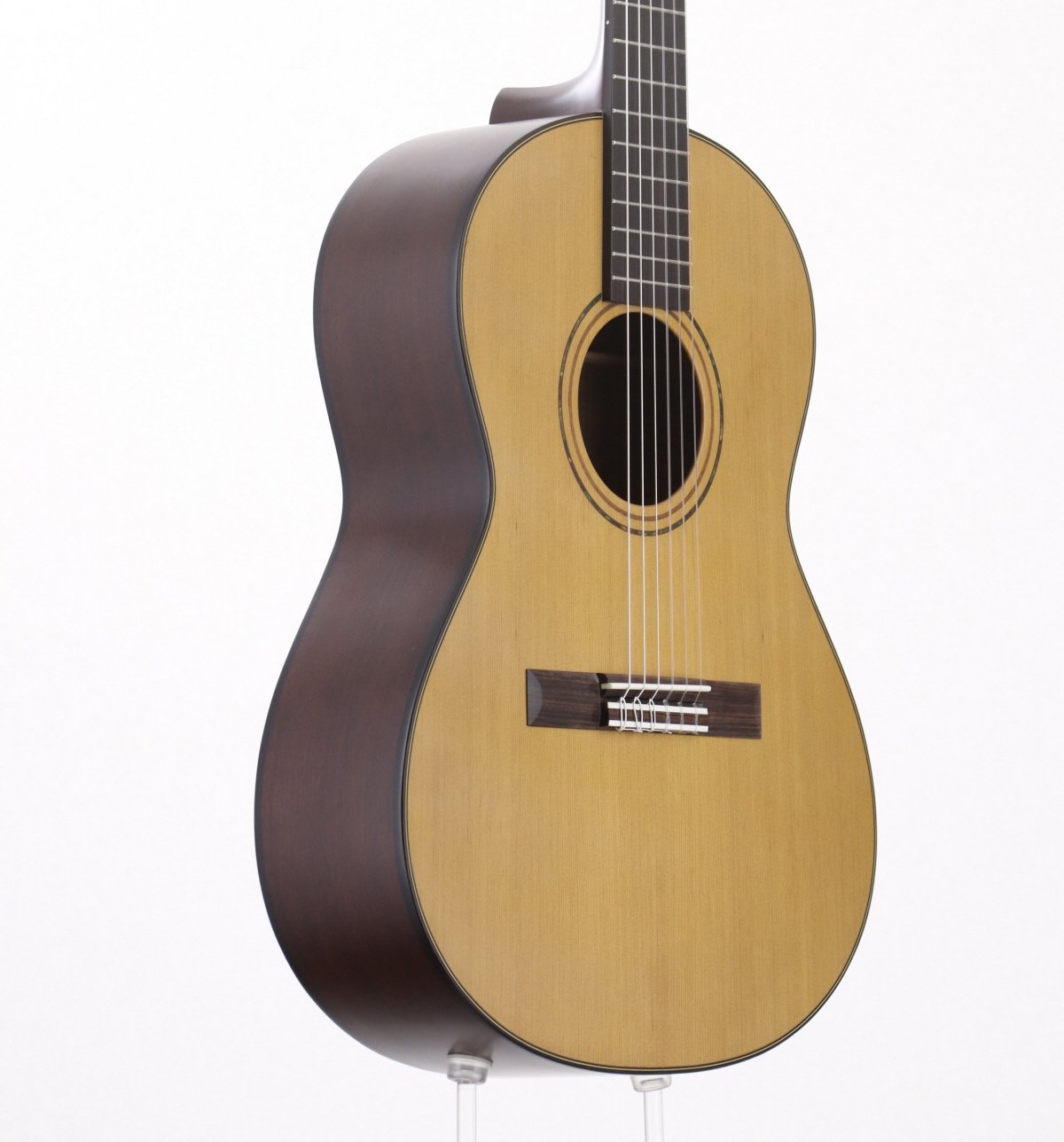 シダーソリッドトップにオバンコルのサイドとバック、マホガニーネック、エボニー指板の仕様。
