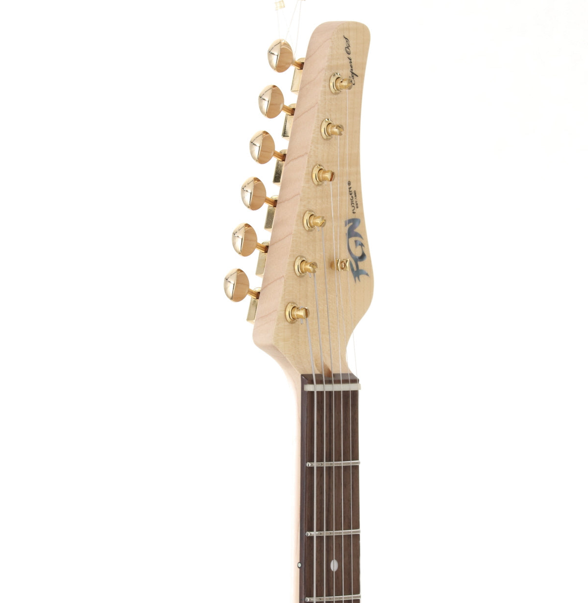 Fujigen (FGN) Expert ODYSSEY series EOS2-FM-R, made in 2022. Flame maple top/ash back, "moonsault heel cutaway joint," quarter-sawn maple neck, rose fingerboard, C.F.S. (Circle Fretting System), FGN OS-2n/OS-2rw/XPERT-Hf PU, rear PU. It is equipped with a direct SW/rear PU coil-tap SW, GOTOH Magnum Lock pegs and GOTOH 510TS-FE1 tremolo.