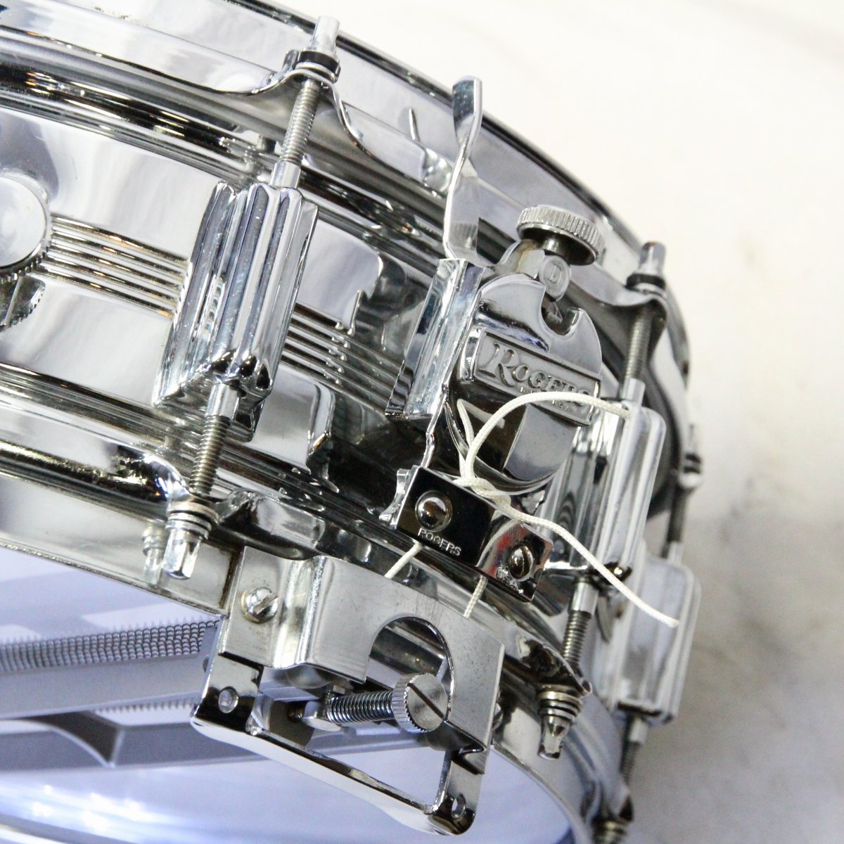 USED ROGERS / LATE 1960s DYNASONIC COB Chrome Over Brass 14×5 Rogers Snare Drum [08]