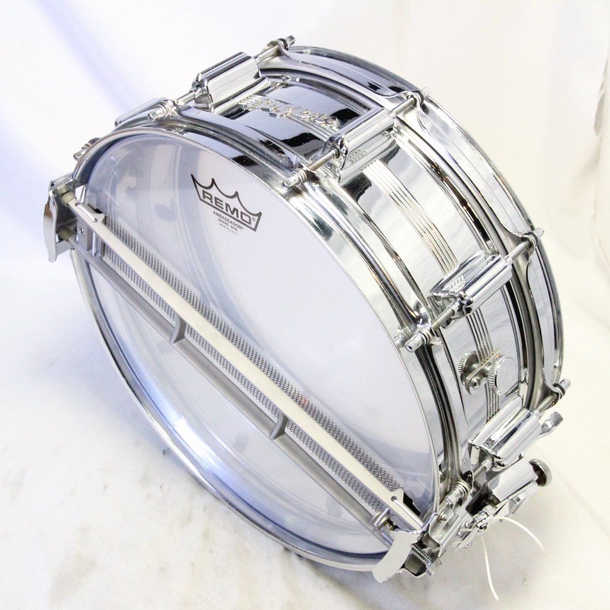 Called a heavy brass shell at the time, it has a heavy shell and a unique snare frame that produces a powerful, gorgeous, and delicate snappy sound.