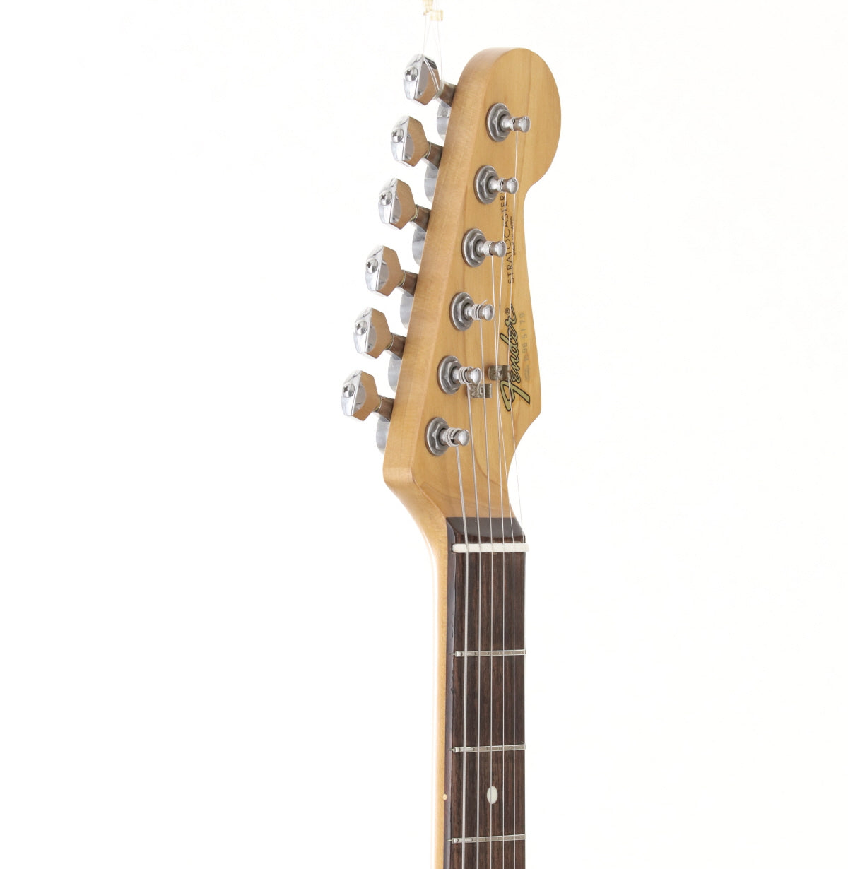 リフレット(細身で低めなヴィンテージスタイル)&ナット交換、ケース/アームは非純正。使用感(色ヤケ、小キズやひっかきキズ、スレや弾きスジ、ピッキング痕、バックル痕、金属パーツやネジ類の曇り・ビッツ・サビ、等々の外観ダメージ)が見られます。