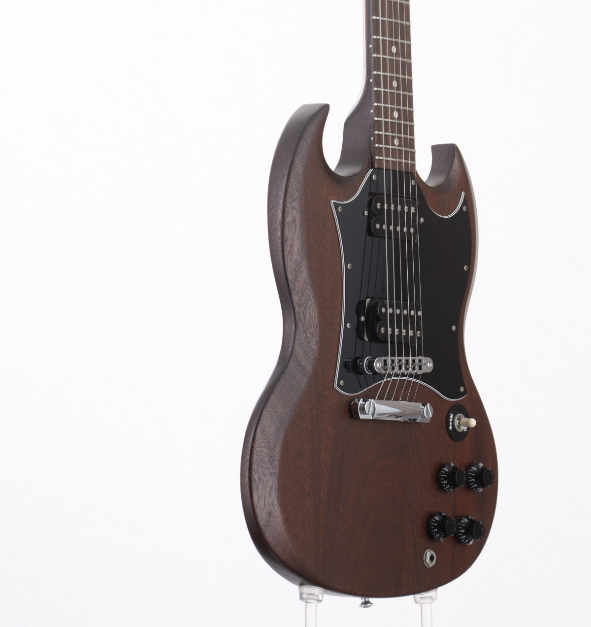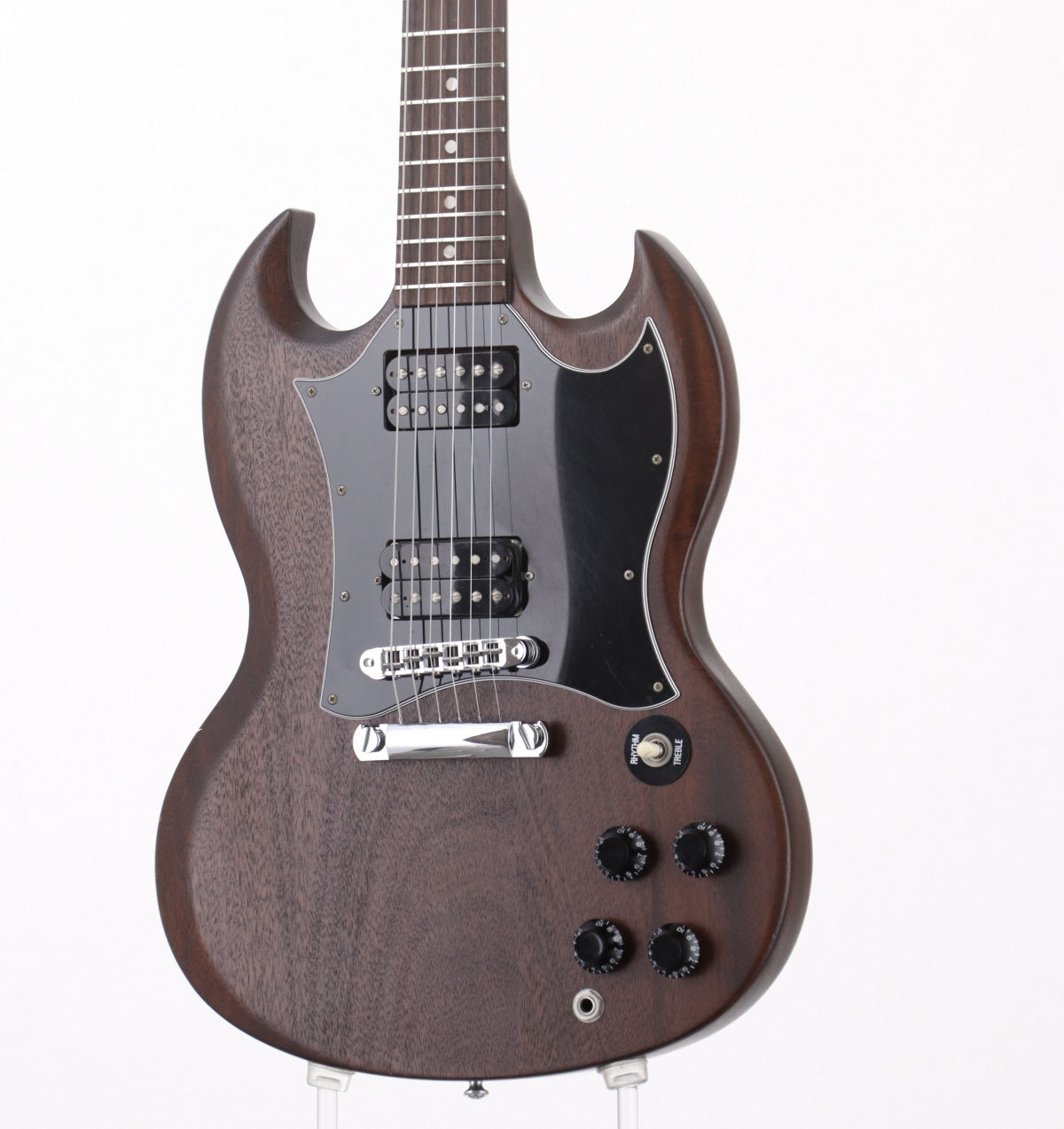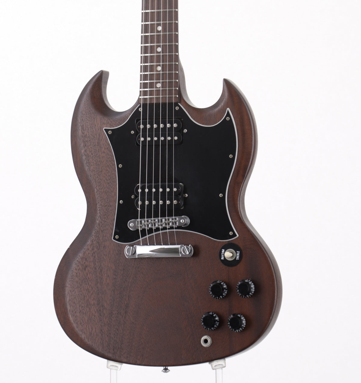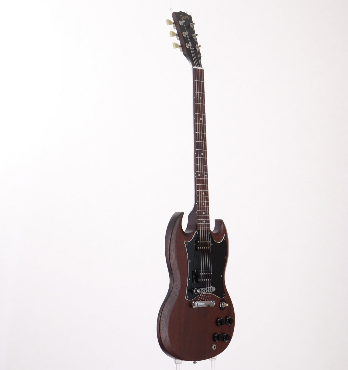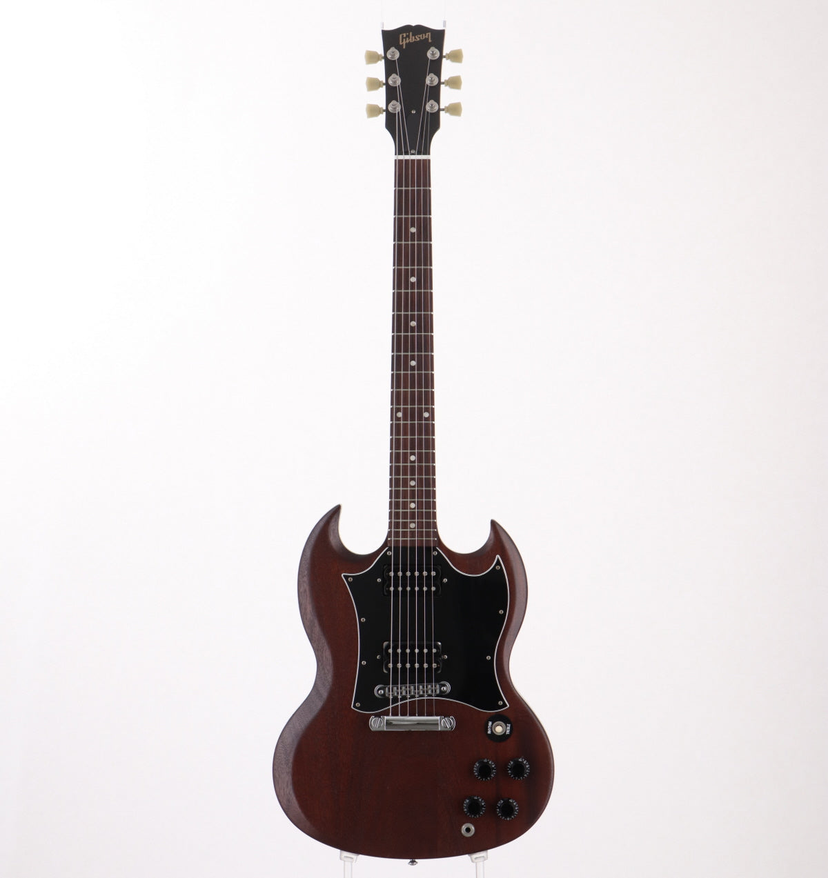 Les Paulと並ぶGibsonを代表するSGシェイプ、ドット・ポジションマークにバインディング無しのSGスペシャル。マホガニー・ボディ&ネック、ローズ指板、ラージピックガード、PUは490R&490Tを搭載し、新品発売当時よりツヤ無し仕上げになっています。