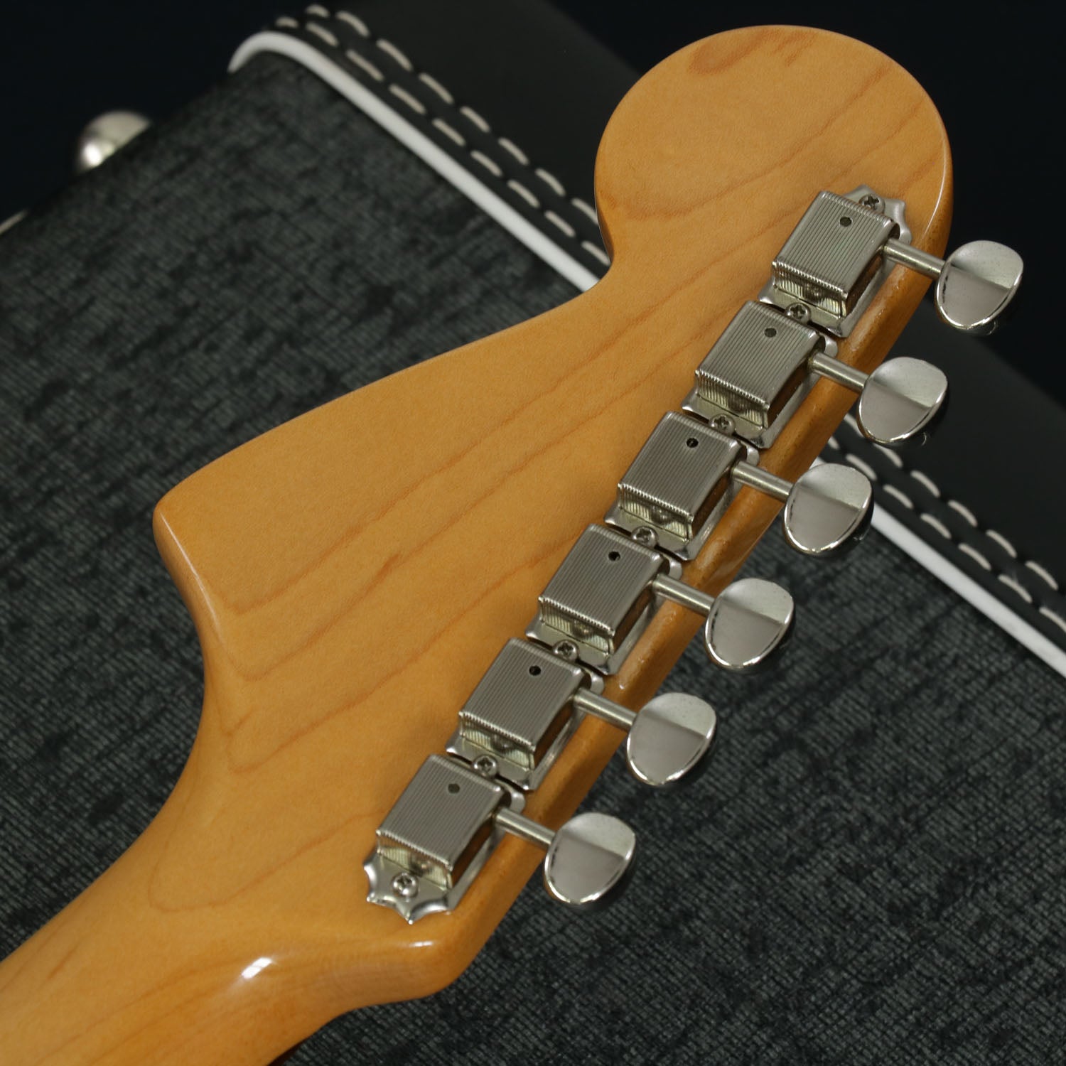 ザ・スミスでの活躍、ザ・ザや様々なアーティストとの共演で知られるジョニー・マーのシグネチャー。アルダー・ボディ、メイプル・ネック、ロース指板、ピックアップはCustom-Wound Bare Knuckle Johnny Marrを搭載し、1弦側のシリーズ/パラレルを含む4-Position Blade SW、6弦側はユニバーサル・ブライトSW&シリーズ配線時のブライトSW、ムスタング・サドルやクロムカバーとナイロンポストインサート挿入トレモロといったコダワリのモデルです。