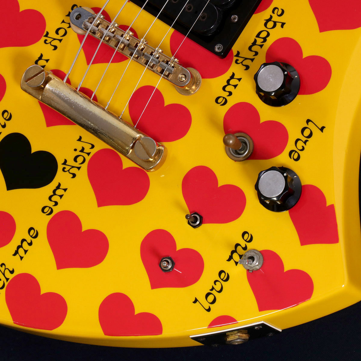 hideモデルと言えばこのモデルを思い浮かべる方も多い”イエローハート”モデルで非常に見た目のインパクトが強い1本。バスウッドボディーにhideのギターパフォーマンスにおいて欠かす事のできないサスティナーにより、半永久的なロングトーンはもちろんハーモニクスモードではフィードバック効果を強制的に発生させる事で、より本格的なhideサウンドを追求する事が可能。薄型ネックに印象的なルックスとサスティナー搭載のモデルです。