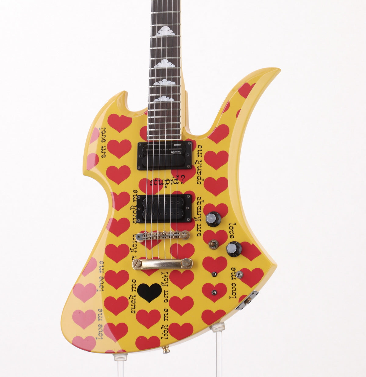 This is the "Yellow Heart" model that many people think of when they think of hide models, and it is one that has a very strong visual impact. The basswood body and sustainer, which is indispensable for Hide's guitar performance, allow for a semi-permanent long tone, and of course, in harmonics mode, a feedback effect is forced, allowing for a more authentic Hide sound to be pursued. This model has a thin neck with impressive looks and a sustainer.