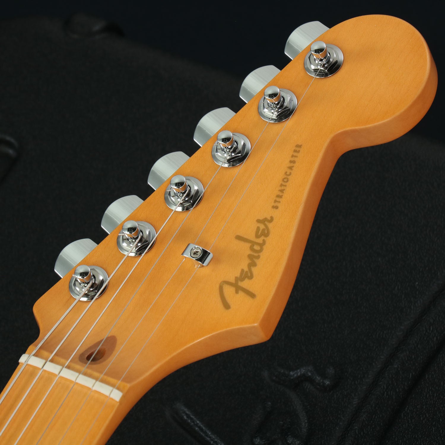 Fender USA American Ultra II Stratocaster, 2024. Alder body, modern D-shaped maple neck, 10-14R compound radius fingerboard, luminous side dots, anodized pickguard, American Ultra tremolo, Ultra II Noiseless Vintage Stratx3 PU, Vol knob with S-1 switch on the Vol knob.