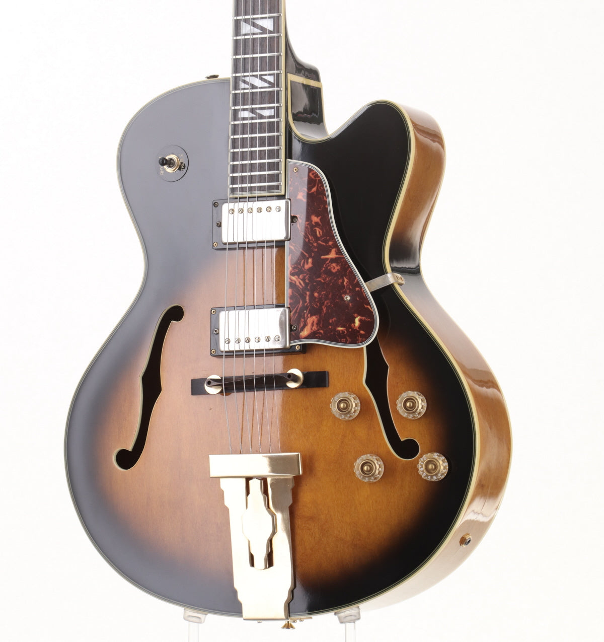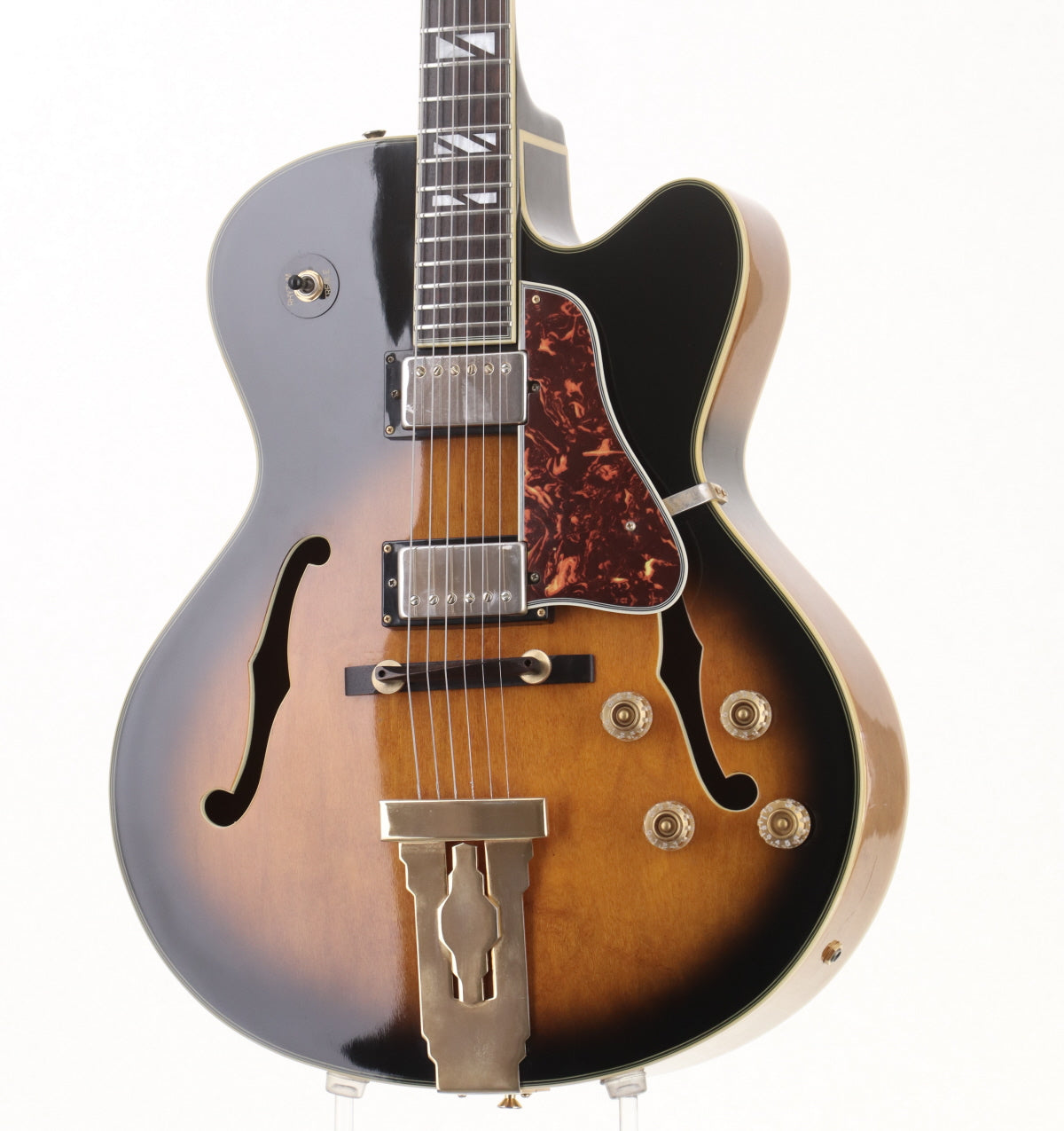 1989年カタログで確認できる1990年代頃のフルアコ。メイプル・トップ/サイド/バック、メイプル・ネック、14度角ヘッド、ローズ指板、PUはMH-2Gハムバッカーx2、ローズウッド・ブリッジ、GOTOH製ペグ、ゴールドハードウエア仕様になっています。