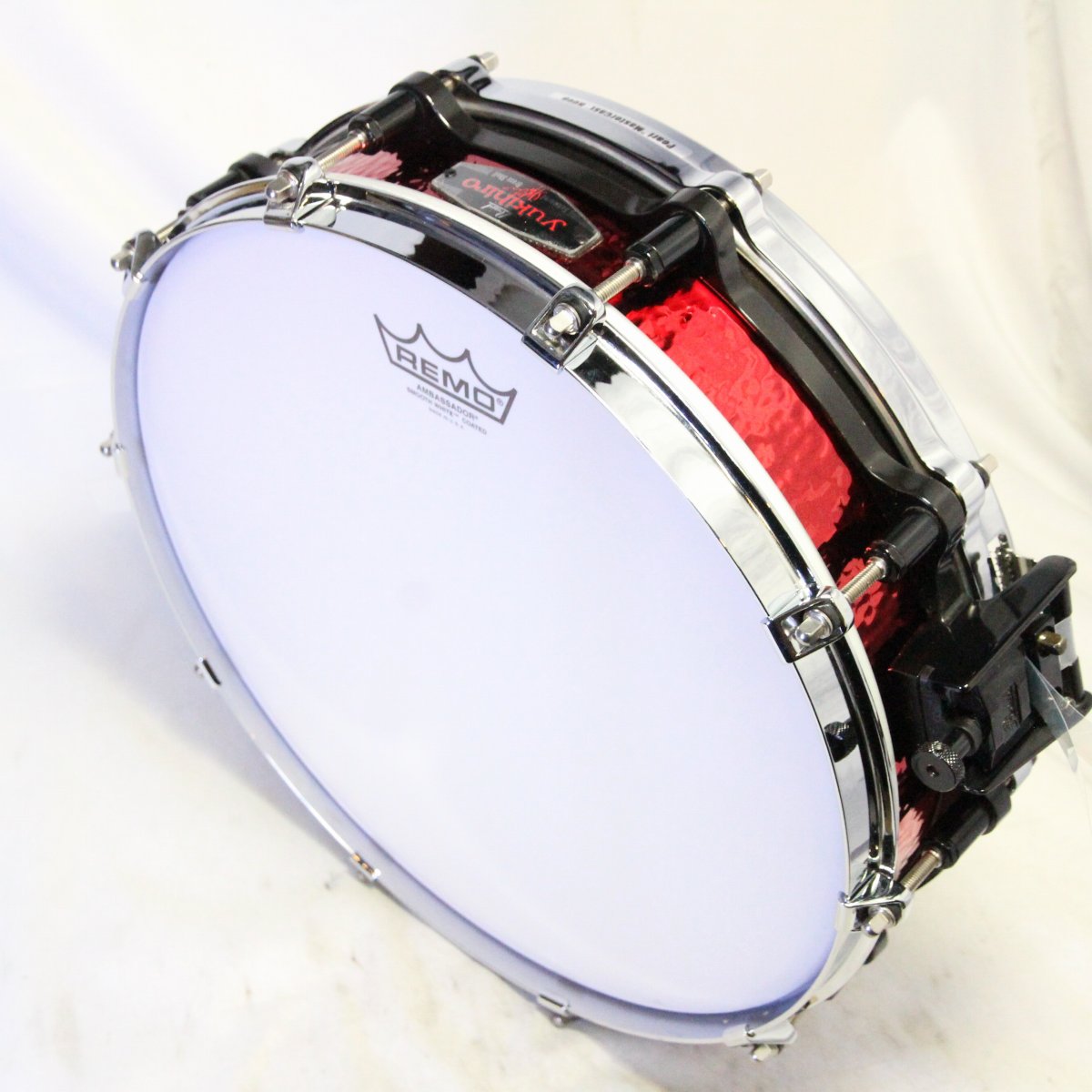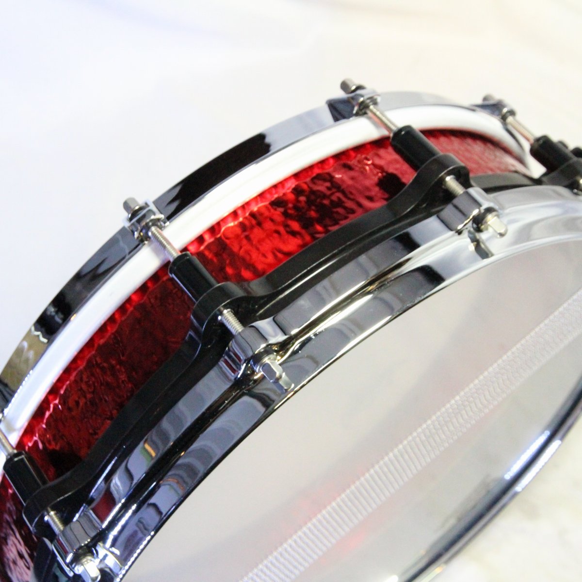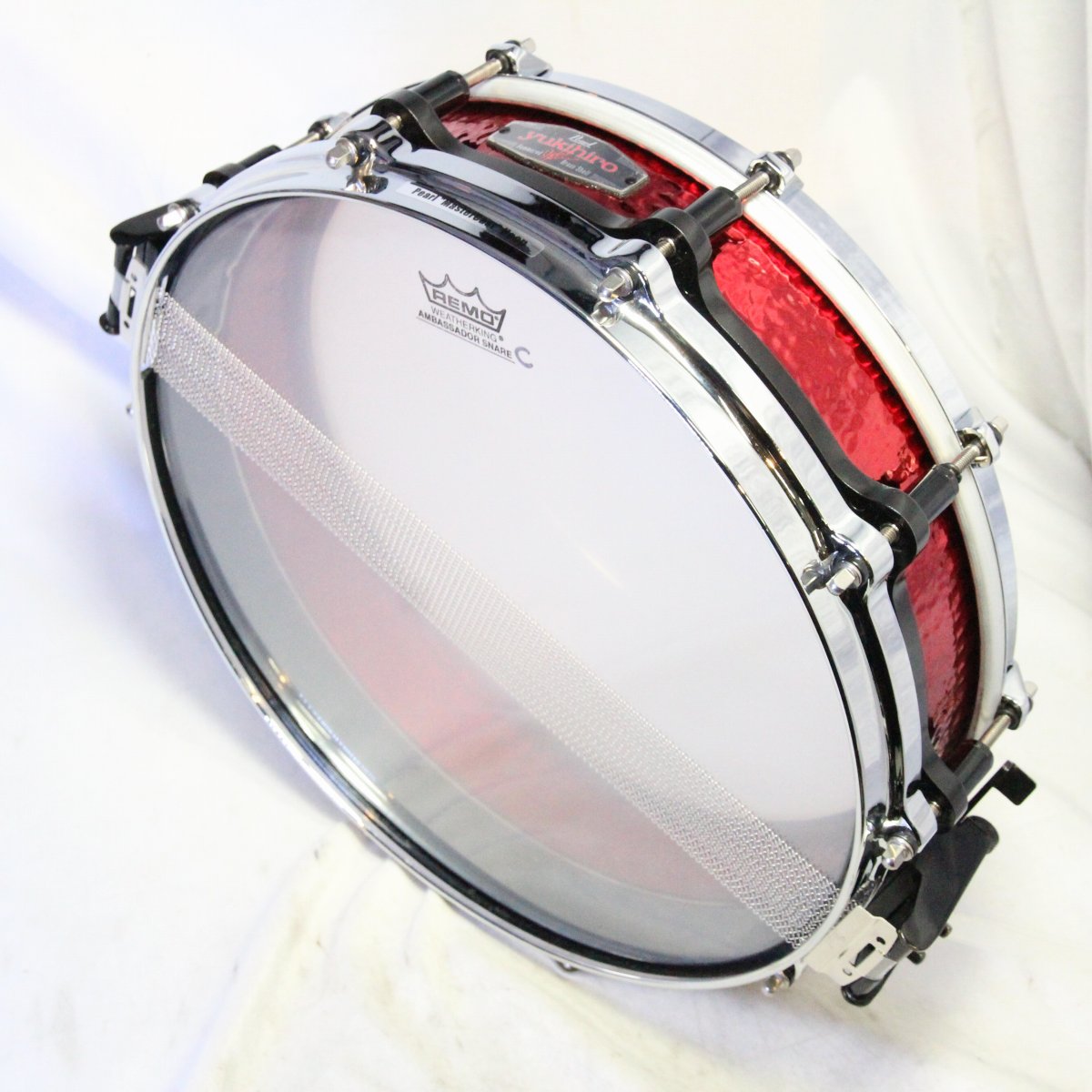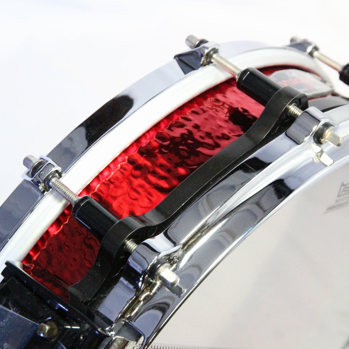 赤いハンマードブラスのシェルにフリーフローティング機構、トップはシングルフランジフープ、ボトムがダイキャストフープとかなり個性的なスペックで、タイトで鋭いサウンドとルックスも相まって、生産期間は短いながらも非常に人気の高かったモデルです。