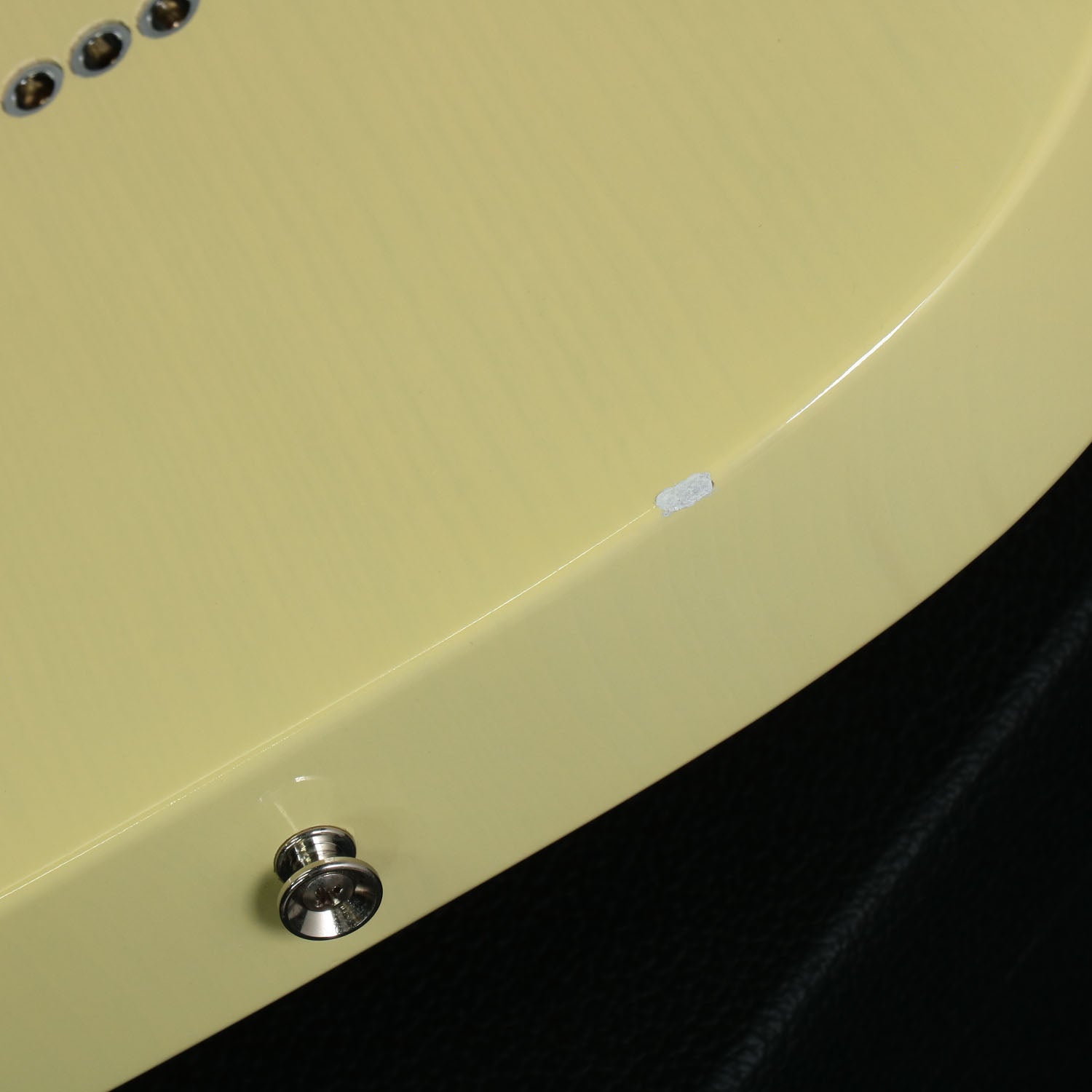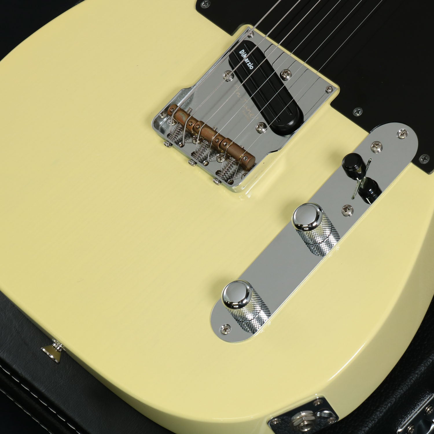 こちらは日本が誇る大物ミュージシャン・あの国民的バンドのフロントマンであるK.K氏も愛用する、楽器店オーダーで製作されたモデル、ブロンドフィニッシュのアッシュボディにブラックガード、ソフトVシェイプのワンピースメイプルネックといった50s TLタイプです。