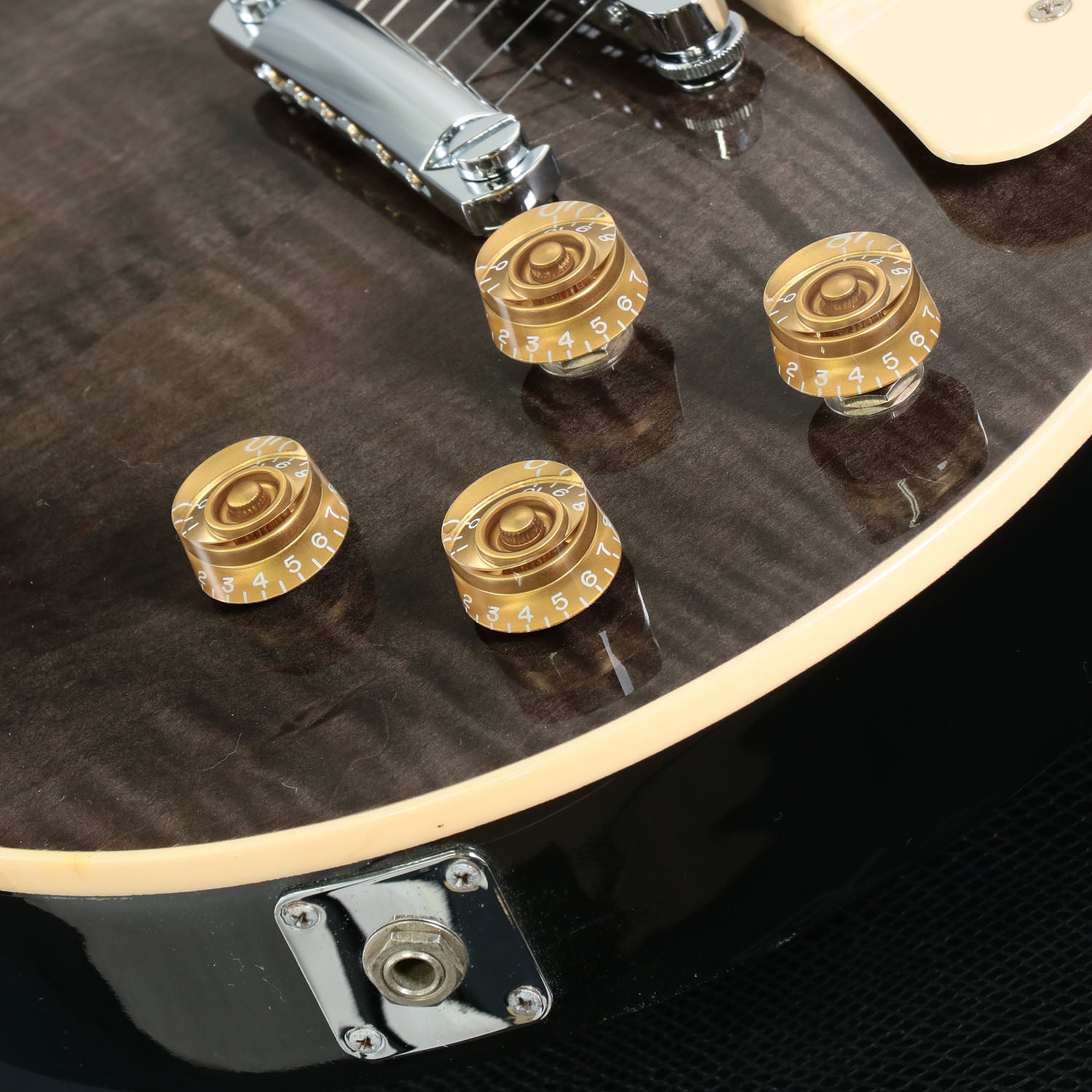 AA flame maple top, mahogany back with Traditional weight relief, 60s slim taper mahogany neck, granadillo fretboard, open type 57 Classic & 57 Classic + PU, coil-tapable at each Vol-Pull The guitar is equipped with Grover locking pegs.
