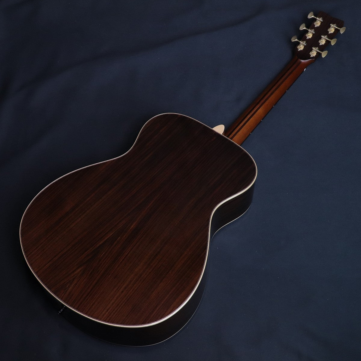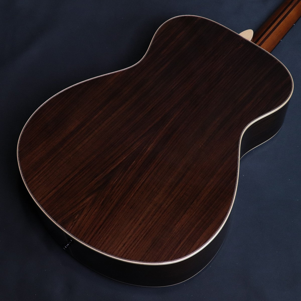 スモールBODY・オールソリッド仕様で、TOPにイングルマン・スプルースを、SIDE/BACKにはローズウッドを採用。