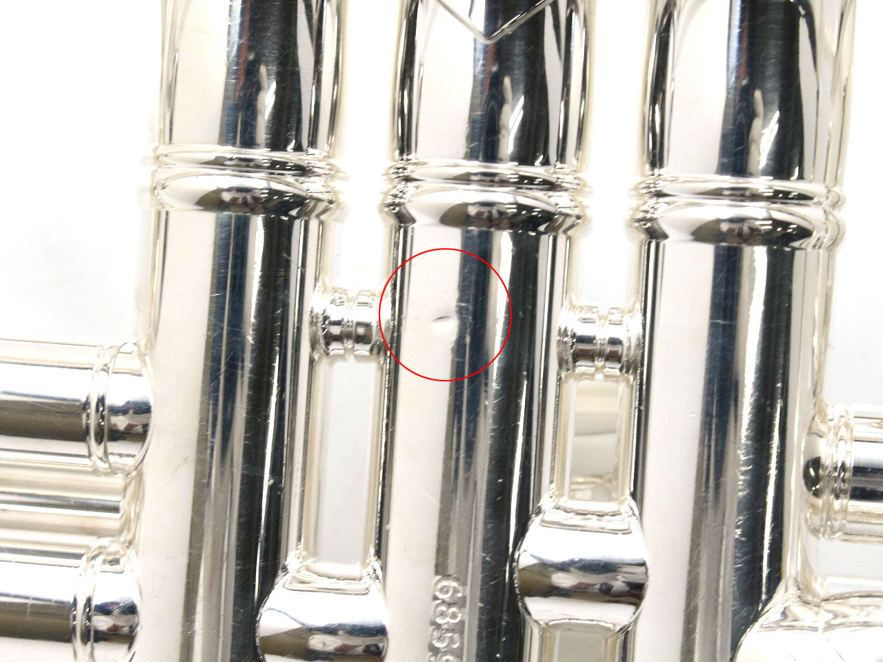 その他、全体に細かな擦りキズやプツプツとしたメッキ浮き、剥がれ、変色などかなり使用感はありますが大きなダメージはなく、実用的なコンディションの楽器です。
