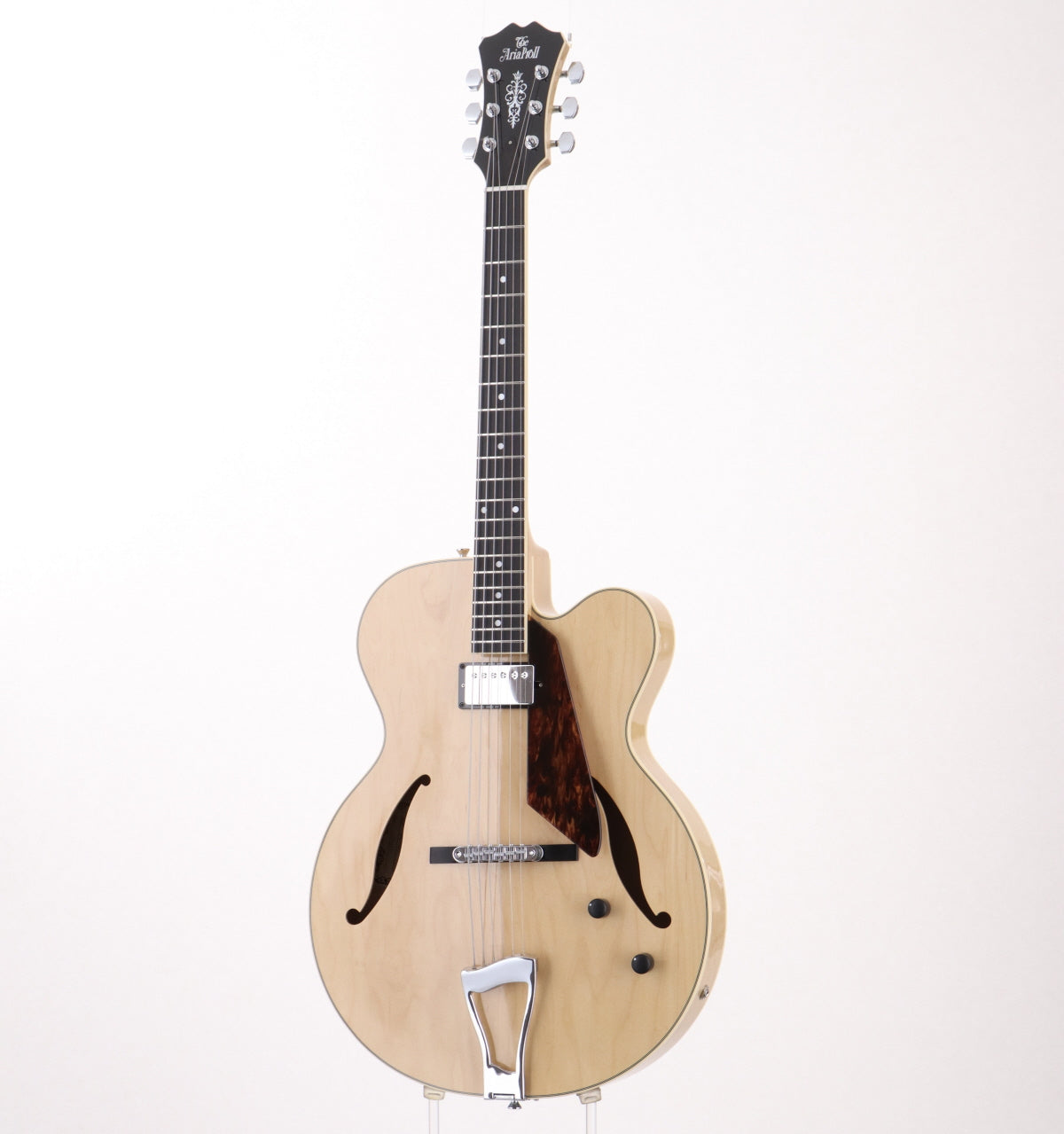 The body and neck are made of maple, the fingerboard is ebony, the pegs and bridge are made by GOTOH, and it is equipped with original pickups.