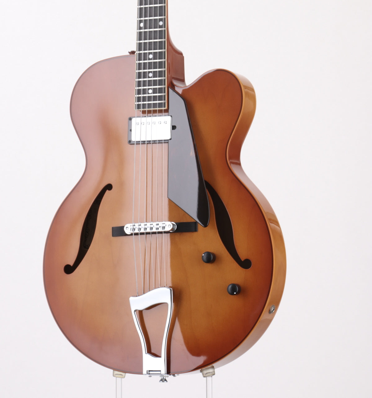 The body and neck are made of maple, the fingerboard is ebony, the pegs and bridge are made by GOTOH, and it is equipped with original pickups.