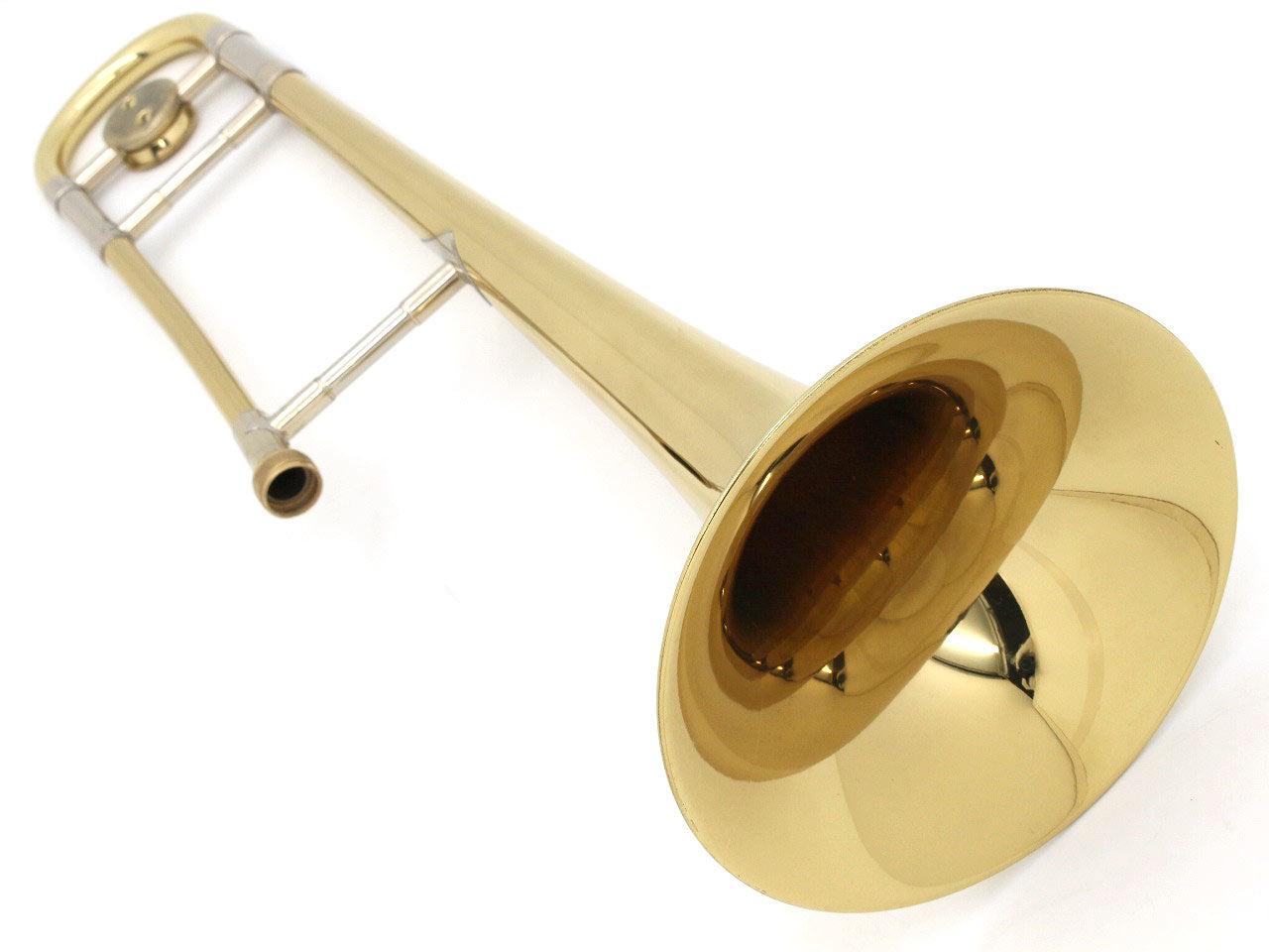 Narrow tenor trombone with 7.5" yellow brass bell, lacquered finish, and 12.7mm bore.