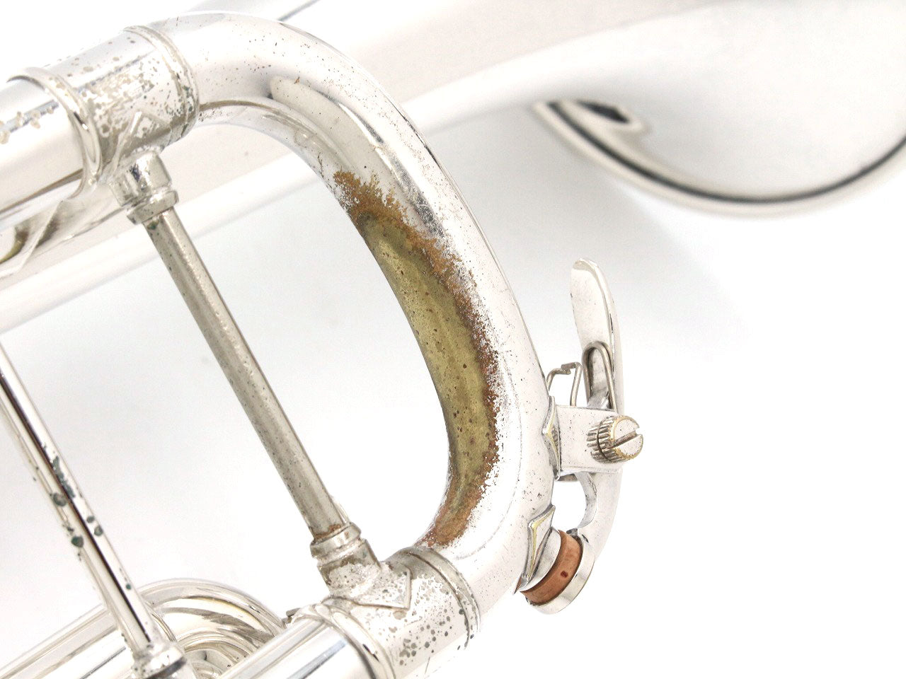 Custom grade model with one-piece yellow brass bell, silver plated finish, with 1st and 3rd triggers, 2 water keys, 2 posts.