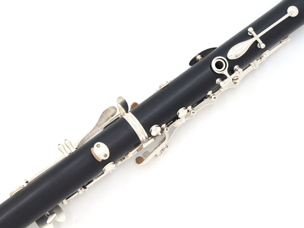 Wooden (granadilla wood), silver-plated key finish, fixed thumb rest, model made from 1988 to 1993.