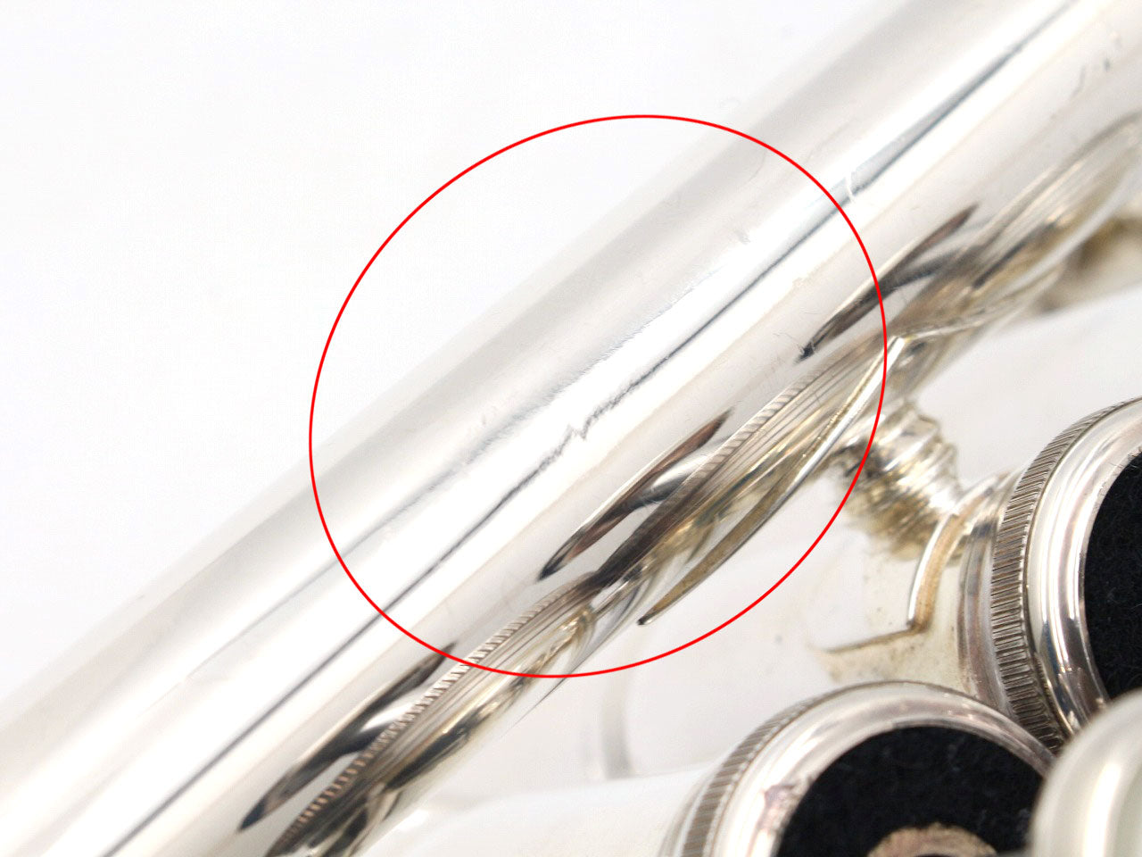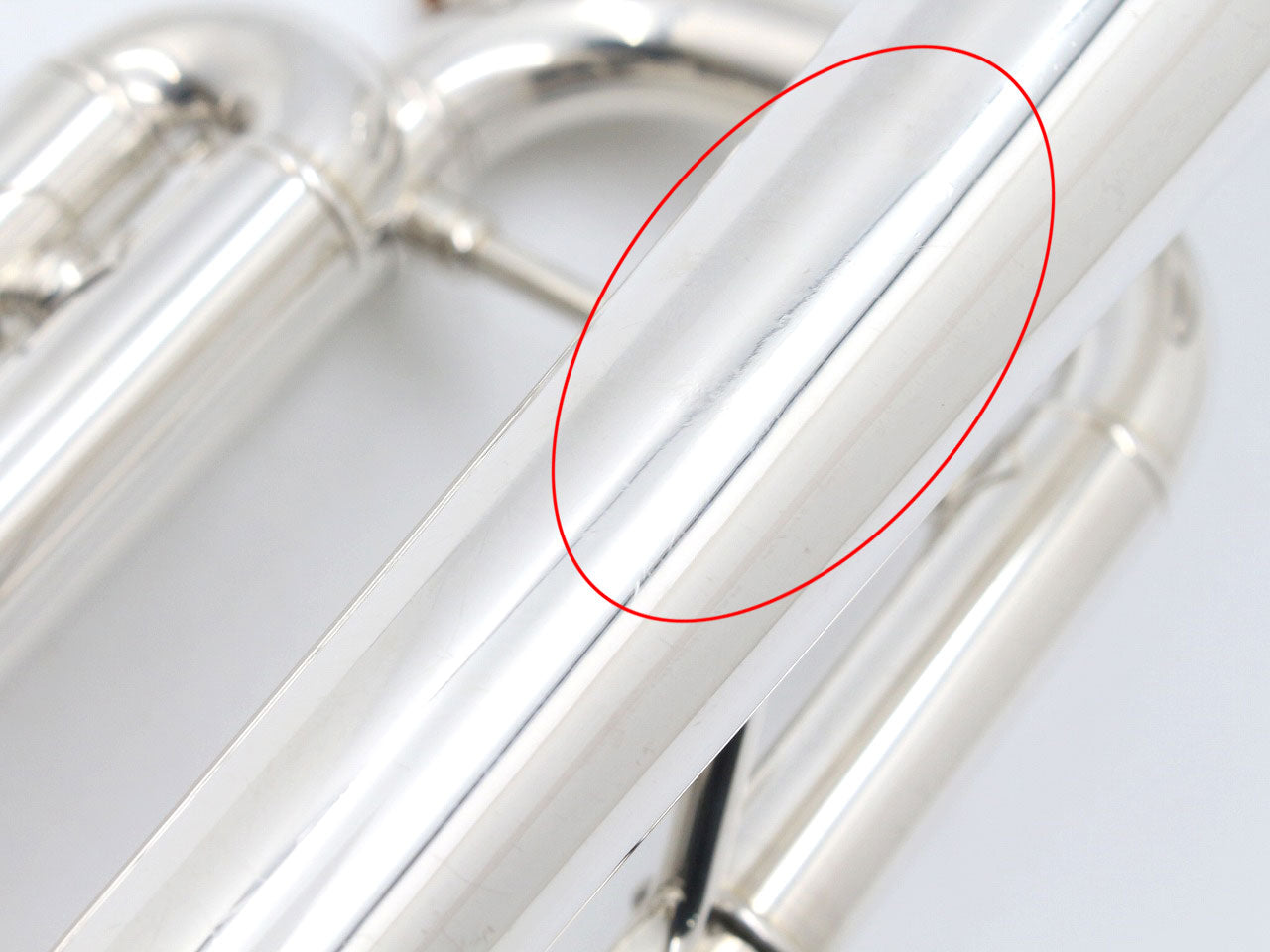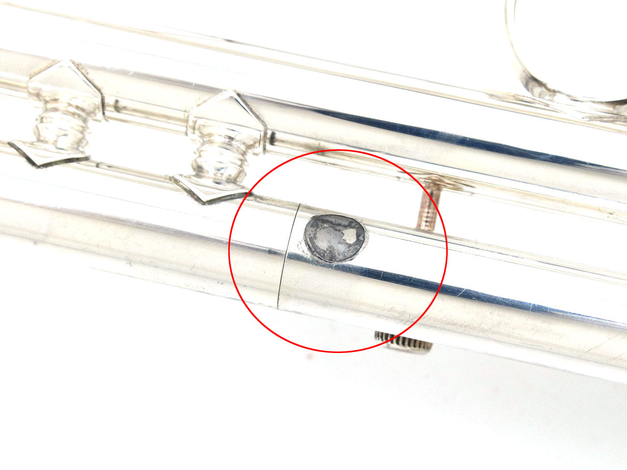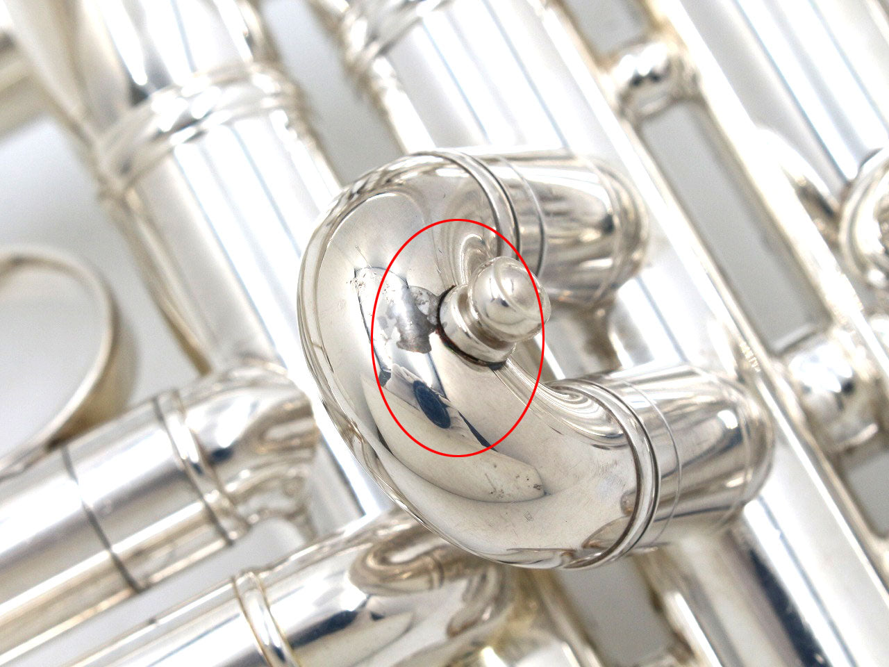 その他、3番抜き差し管ストッパーのハンダが外れており、跡が残っており、全体的に傷や変色などの使用感がある実用的なコンディションの楽器ですが演奏上支所が出るようなダメージはなく、きっちり調整を行なっておりますので長くお使いいただけます。