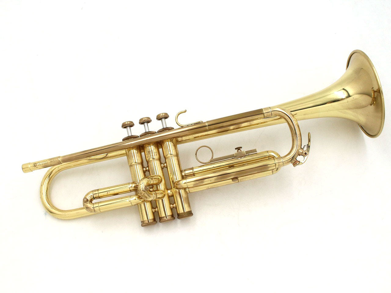 細かな傷や銀メッキのくすみ、ロゴの退色などの使用感がありますが、大きなダメージはなく、実用的なコンディションの楽器です。