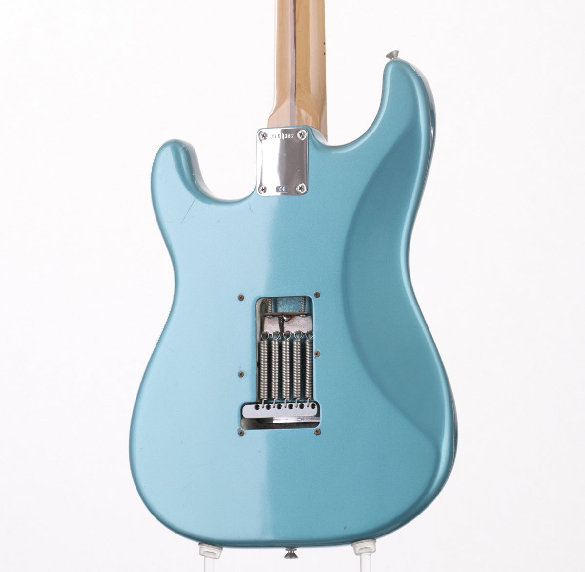 ボディ裏のコントロールパネルが取り外され欠品しております。取り付けネジはボディに残っております。またトレモロスプリングが2本追加されております。