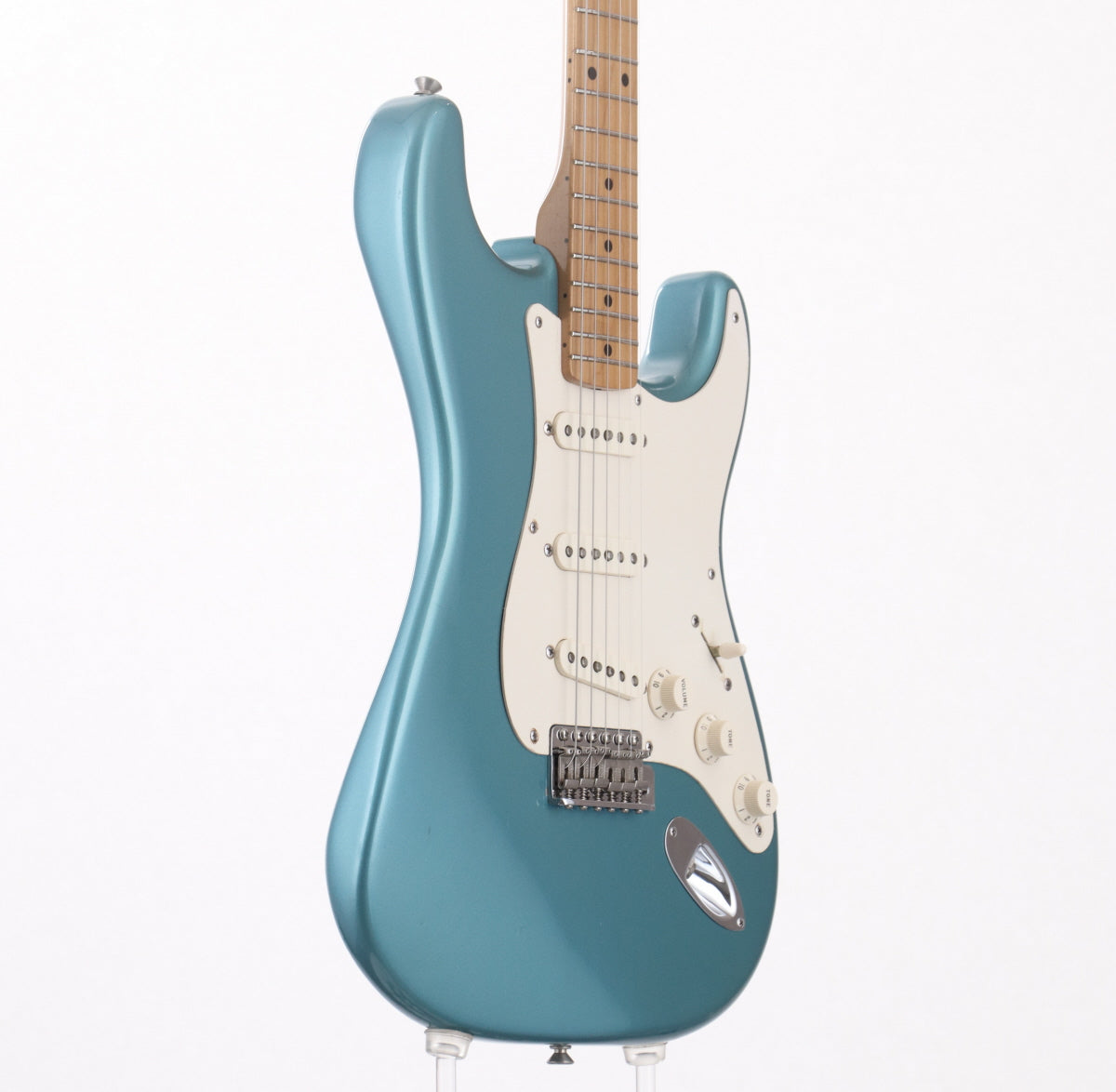ボディはアルダー、メイプル1ピースネック、8点止めの1プライピックガード、3Wayピックアップセレクター、シンラッカーフィニッシュ。