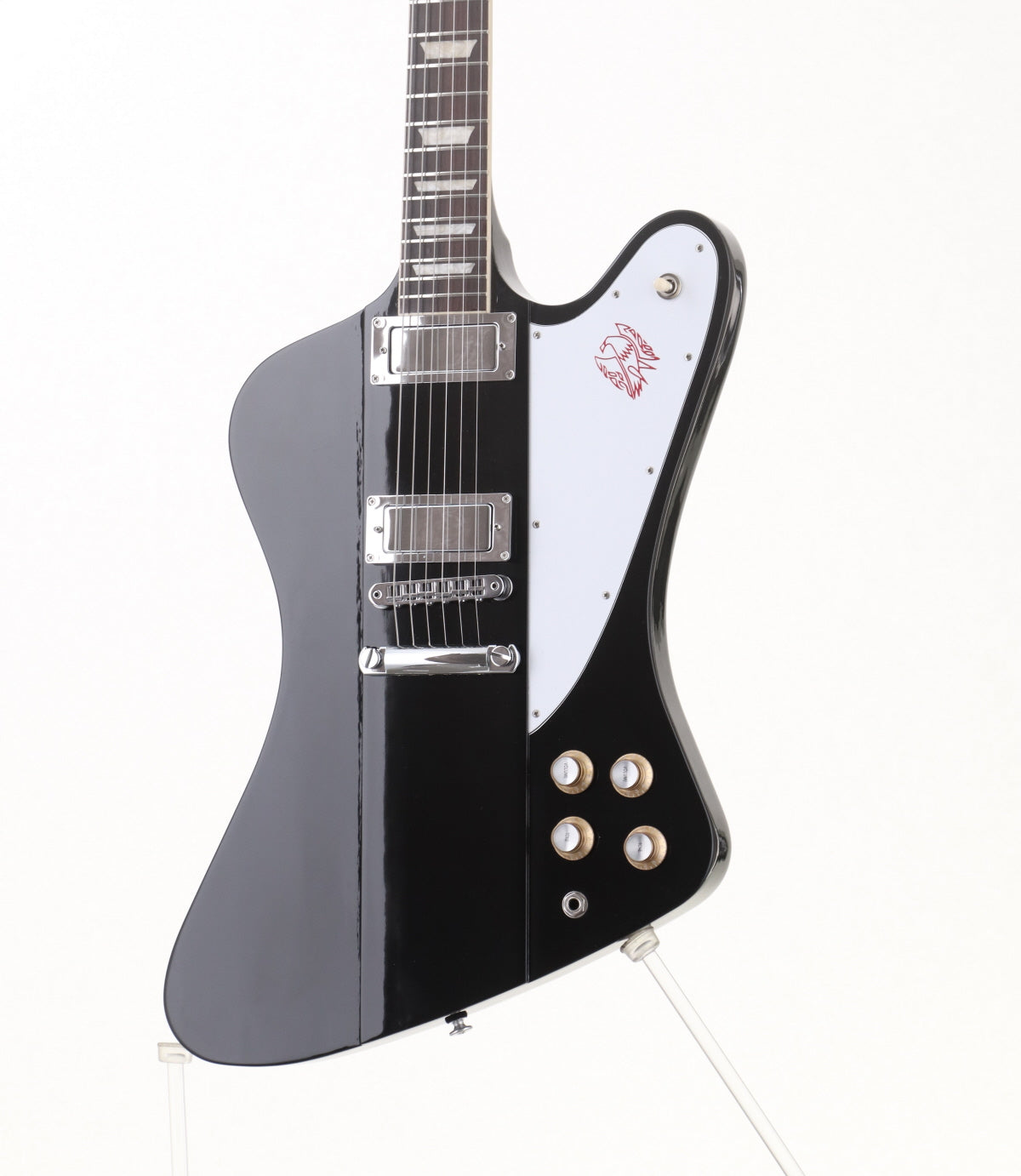 ボディはマホガニーでオリジナルのリバースファイアーバードのシェイプ、ネックはマホガニーでスリムテーパープロファイル、セットネック方式、指板はローズウッド、プラタパススタイルのヘッドストックでGrover Mini Rotomaticチューナー装備、ファイアーバードミニハムバッカーピックアップを2基搭載。