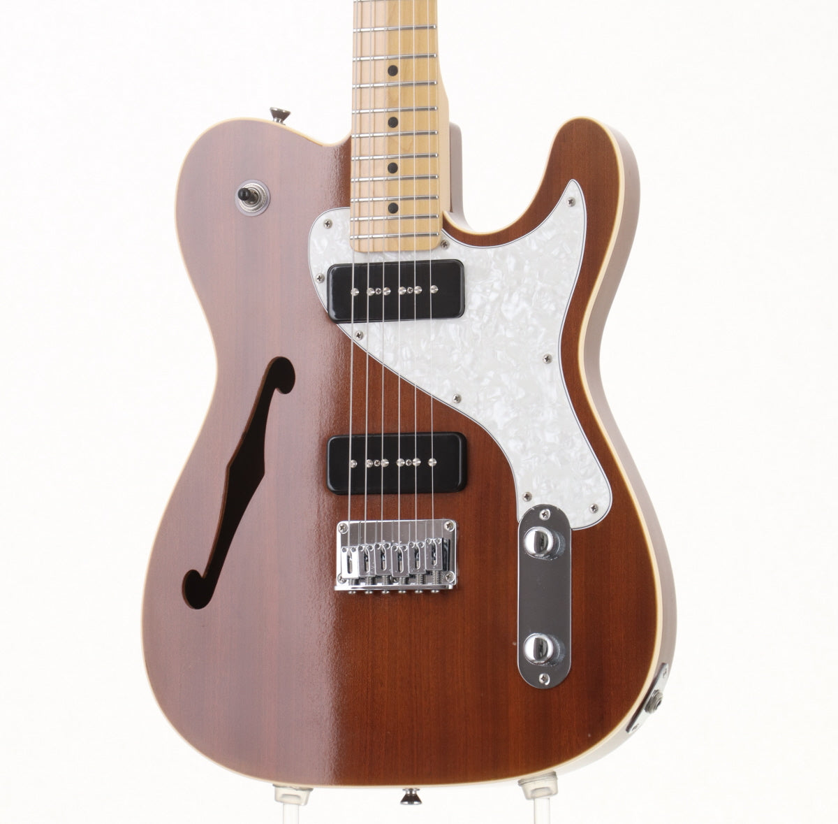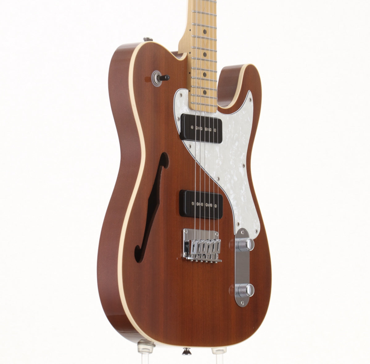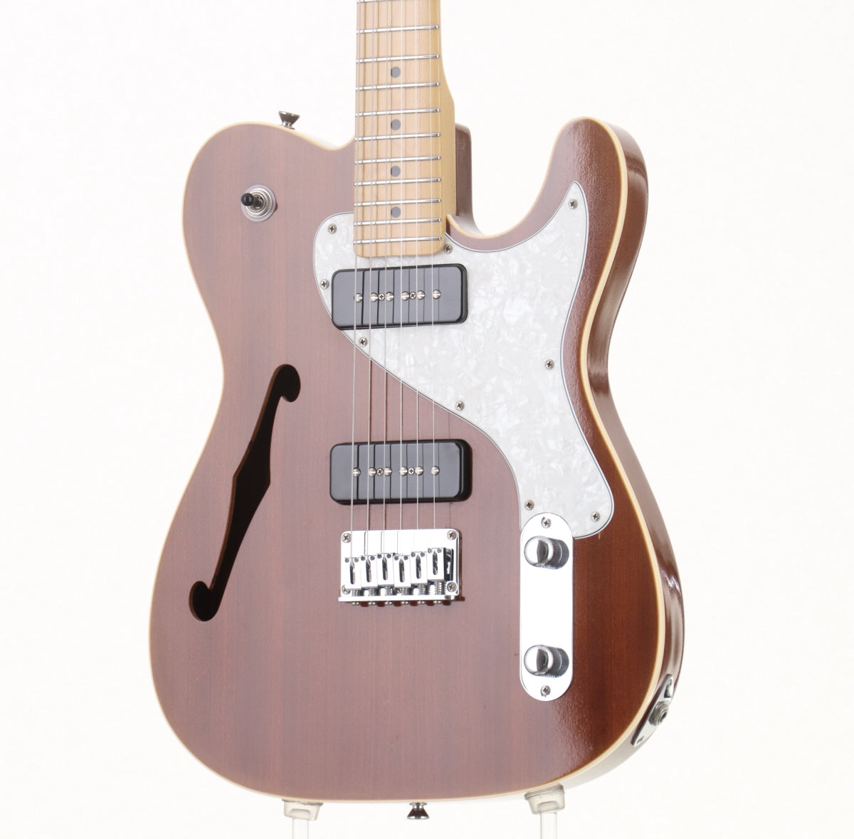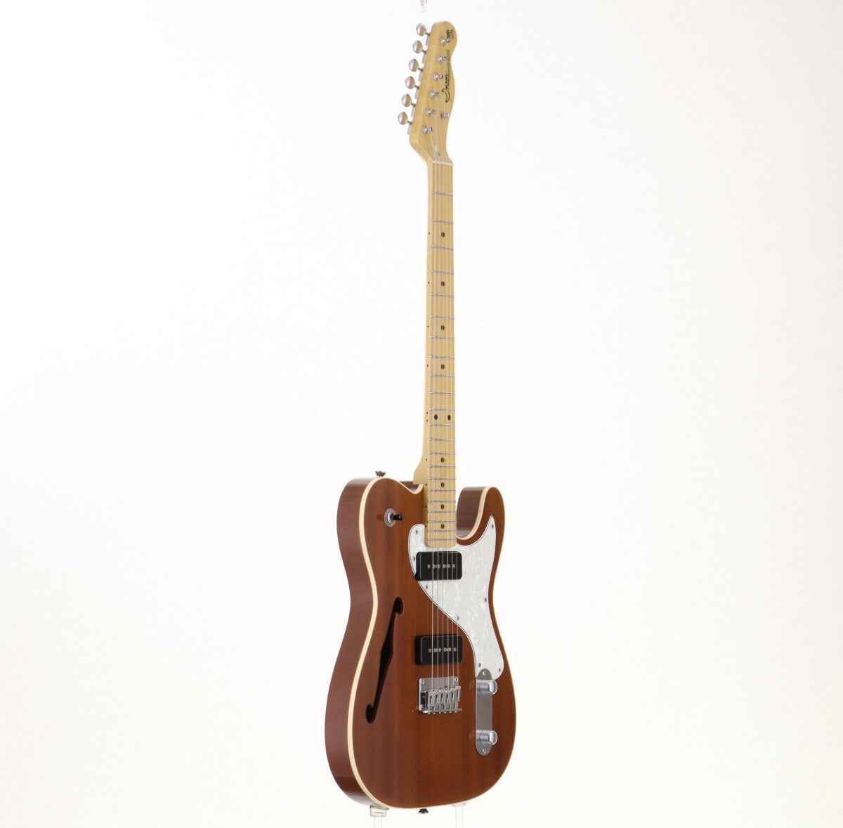 ボディはマホガニー、ネックと指板はメイプル、ソープバータイプのピックアップを2基搭載。