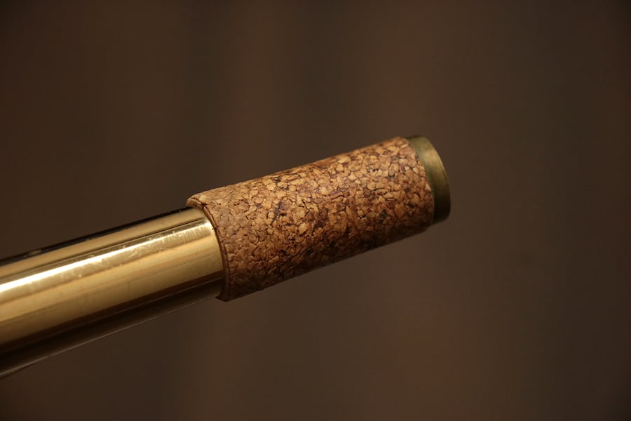 全体的にキズ、サビの発生が見られます。ラッカーがしっかりと残ったコンディションです。ベルキィガードにハンダ修復跡、U字管のキィポストにハンダ修復跡、胴輪の刻印に不自然さが残ることからベル管とU字管はリラッカーされている可能性があります。指の当たる箇所のラッカーもそれほど減っておらず、使い込まれた印象はありません。