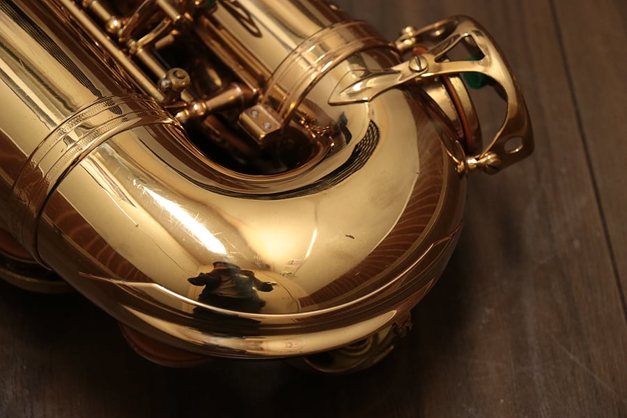 鳴らした印象としては、現代セルマーにも通じるような明朗で粒立ちが良くエッジのあるサウンド。ダイナミクスの幅はフォルテ方向に広く、セルマーサックスらしい太く豊かなサウンドでありながらもでまだまだ吹き込まれた感じはなく抜けきっていない印象。これから鳴らし込んで育てていく楽しみと将来性を感じさせてくれます。やはりジュビリーなどに比べ抵抗感が感じられますが、その分しっかりと息を入れてあげればどっしりとしたボトム感がある野太いサウンド。楽器自体はやや武骨な印象ですが、繊細な表現が苦手ということはなく、とても腰があり密度のあるサウンド。サブトーンで鳴らしても音の輪郭はきっちりとあります。
