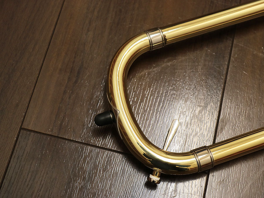 Condition: Scratches and lacquer peeling from overall use. The feel of use is noticeable, especially on the handle. Rust is noticeable on the welds and bell rim. The slide U-shaped part and the bell flare to the bell tube show the impression of having been well used, as there are noticeable dents and repair marks.
