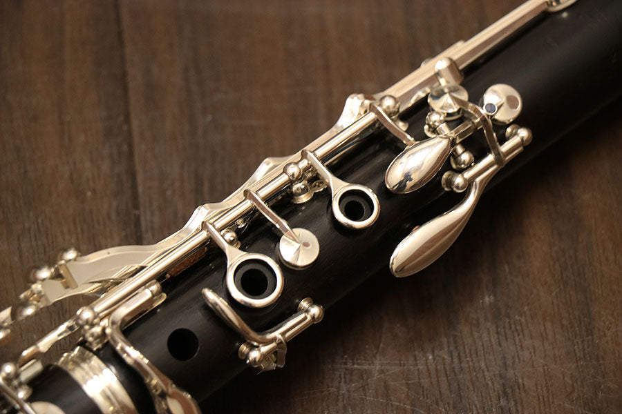 The R-13, a world-class clarinet from a royal brand of clarinets, is the world standard clarinet sought after by orchestras, brass bands, soloists, and chamber music stages around the world. It is highly popular among Japanese orchestras and brass bands as well, with a very large number of loyal users. Overall, there are some scratches from use and fading of the logo, but there is no major damage. The entire instrument has been adjusted including the replacement of all tampos.