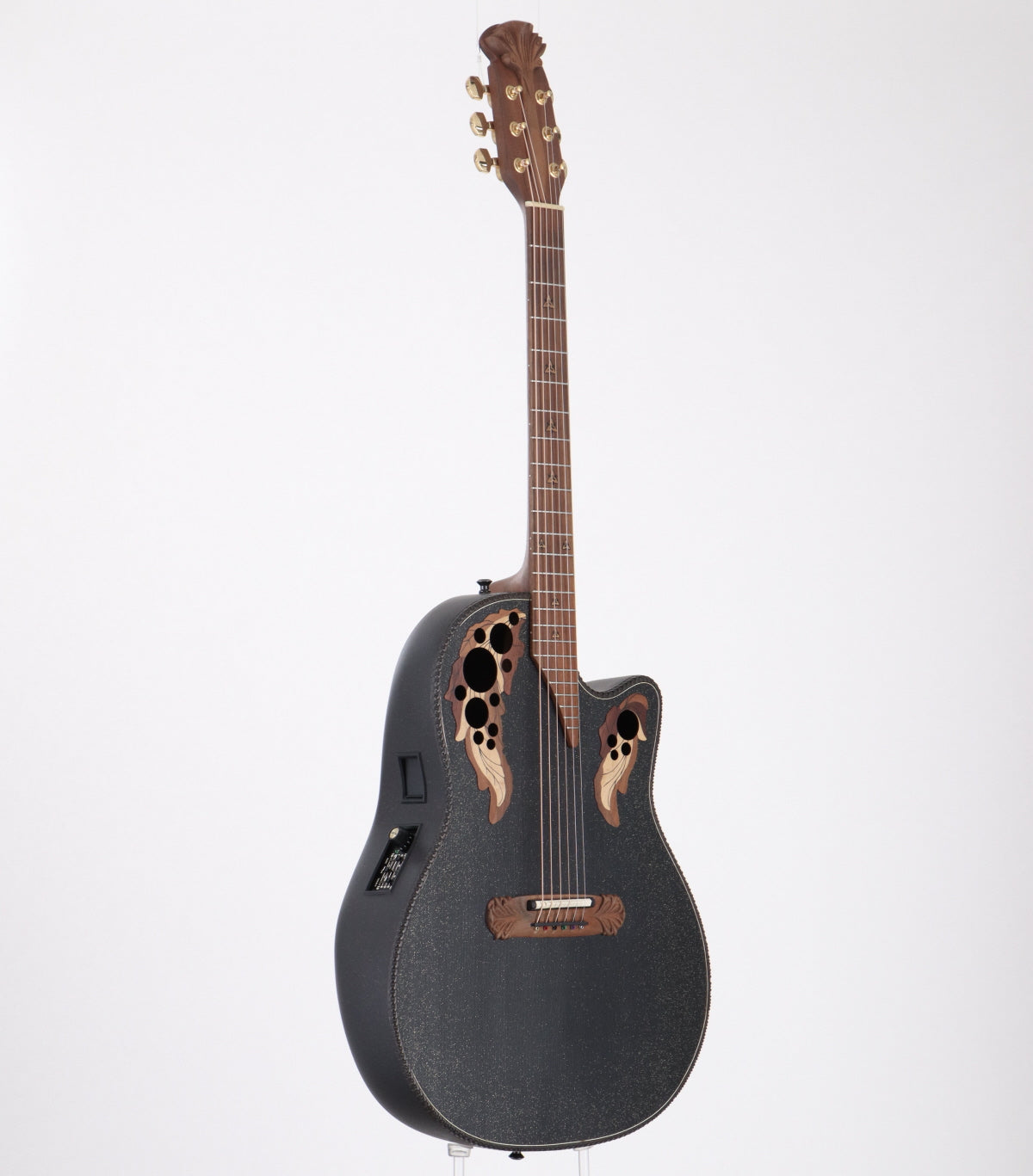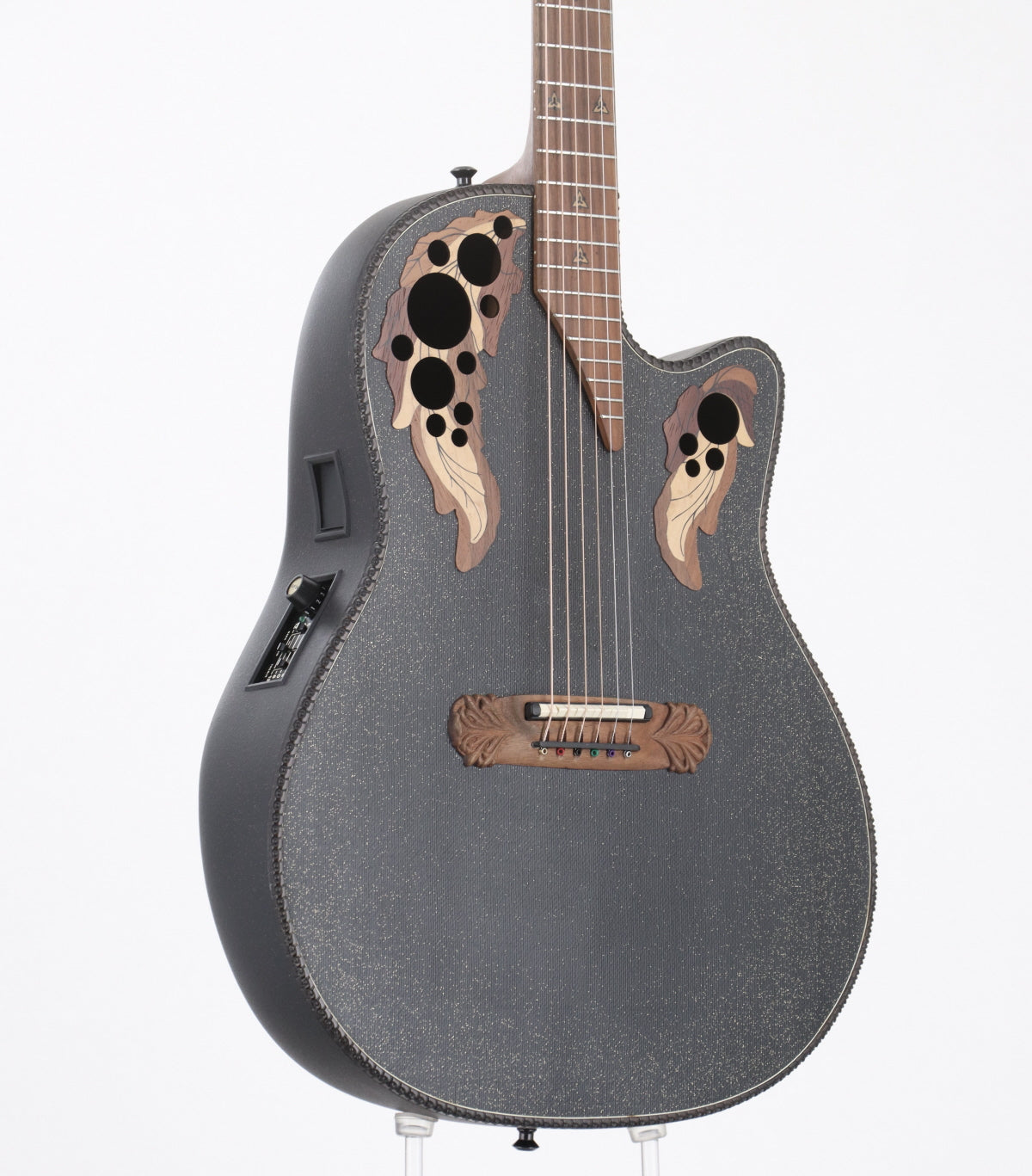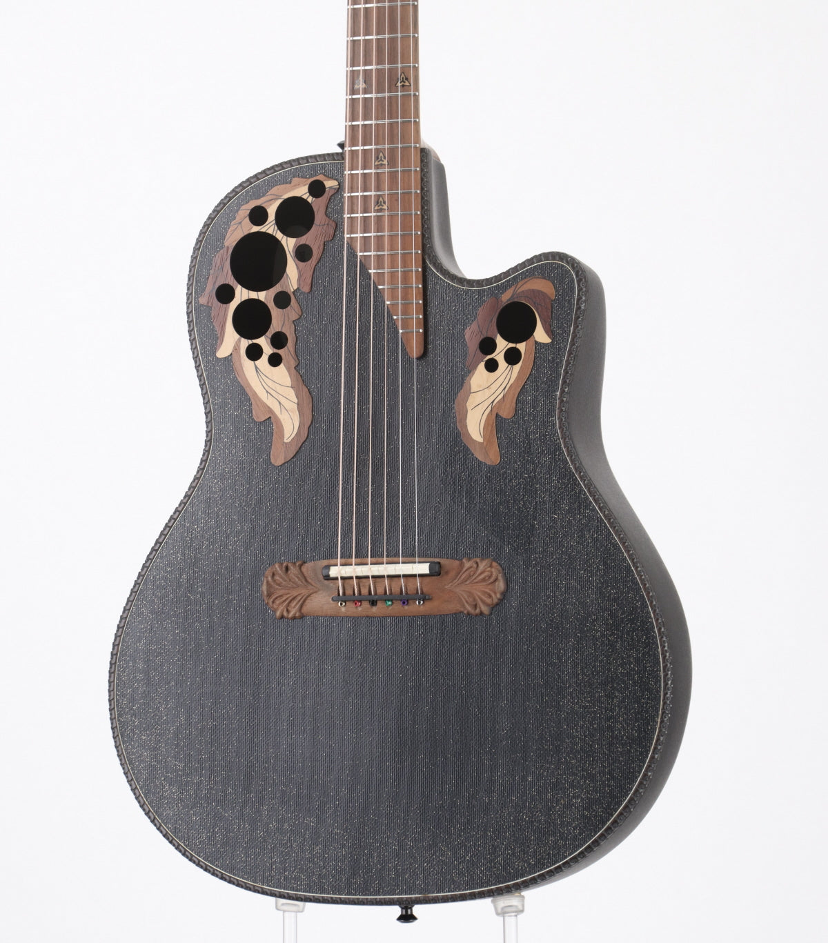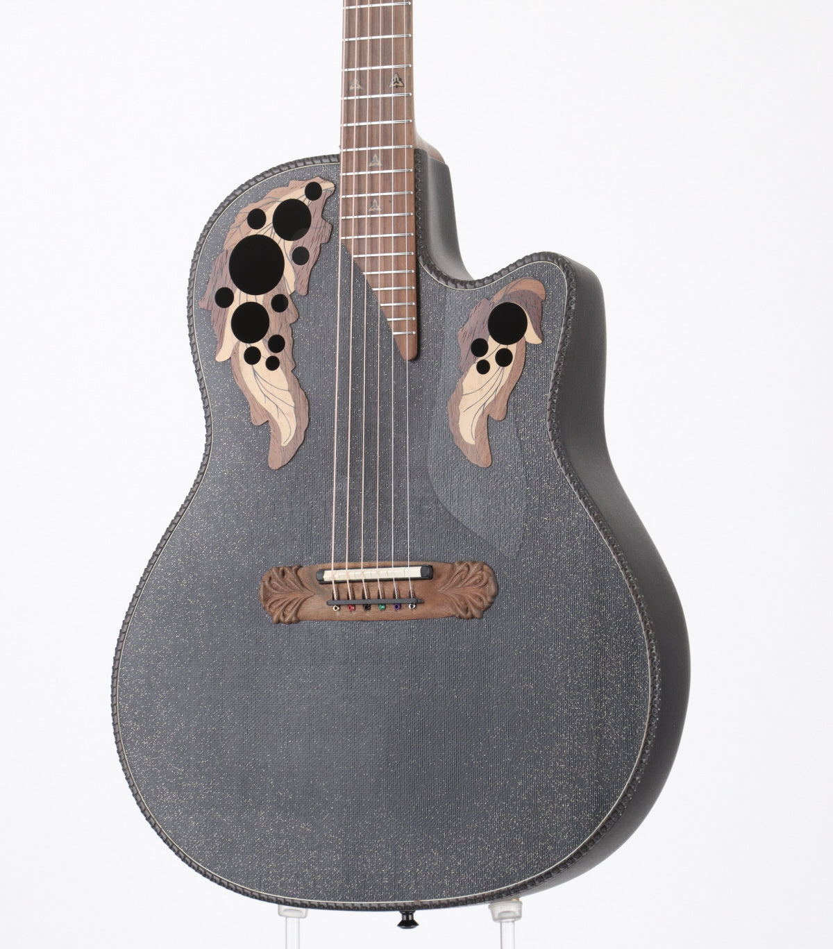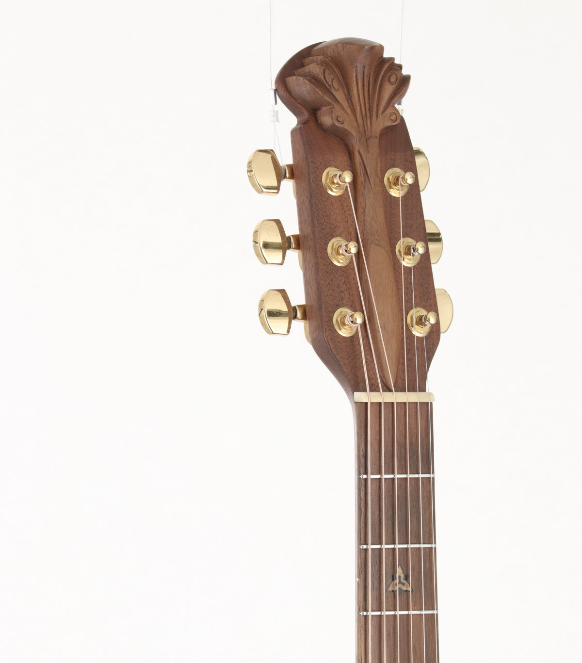 カーボングラファイトトップが特徴で多くのプレイヤーが憧れるトップグレードのスーパーアダマス。こちらはカッタウェイ付き、ボディバックは深めのディープボウル仕様です。