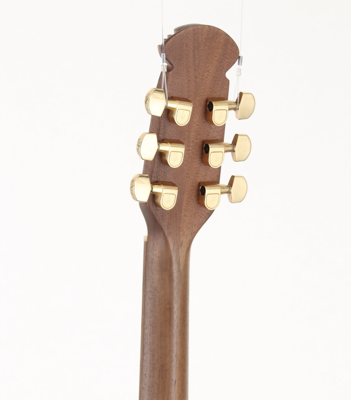 ネックはウォルナットの2pcs、指板面もウォルナット、ネックシェイプはおなじみのトライアングルでナット幅は約42.8mmです。プリアンプはシンプルな3バンド仕様のOP24、ペグはオリジナルのシャーラーです。