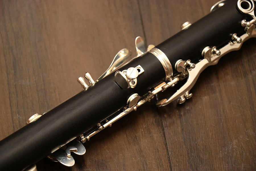The R-13, a world-famous clarinet of the Royal Road brand, is a world-standard clarinet that is sought after by orchestras, brass bands, soloists, and chamber musicians around the world. It is highly popular and has a very large number of favorite users in Japanese orchestras and brass bands. Finger rests are movable. Key parts are silver plated. Overall, there are some signs of use such as scratches and fading of the logo. There is a crack on the upper pipe. All tampos have been replaced and the entire instrument has been adjusted.