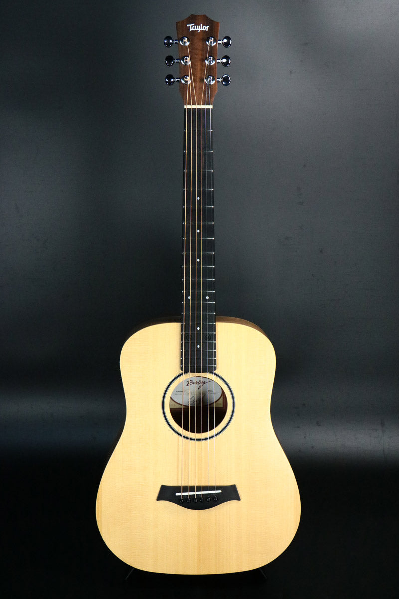 ドレットノートの3/4サイズとなるベイビーテイラーには、ソリッドスプルースTOP、ウォルナットSIDE/BACK、メイプルNECK、エボニー指板/ブリッジ、ミニサイズながらもしっかりとしたXブレーシングを採用。ES-Bピックアップシステム* +ビルト・インデジタルチューナーを搭載。