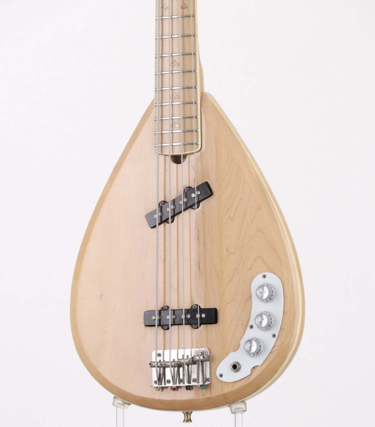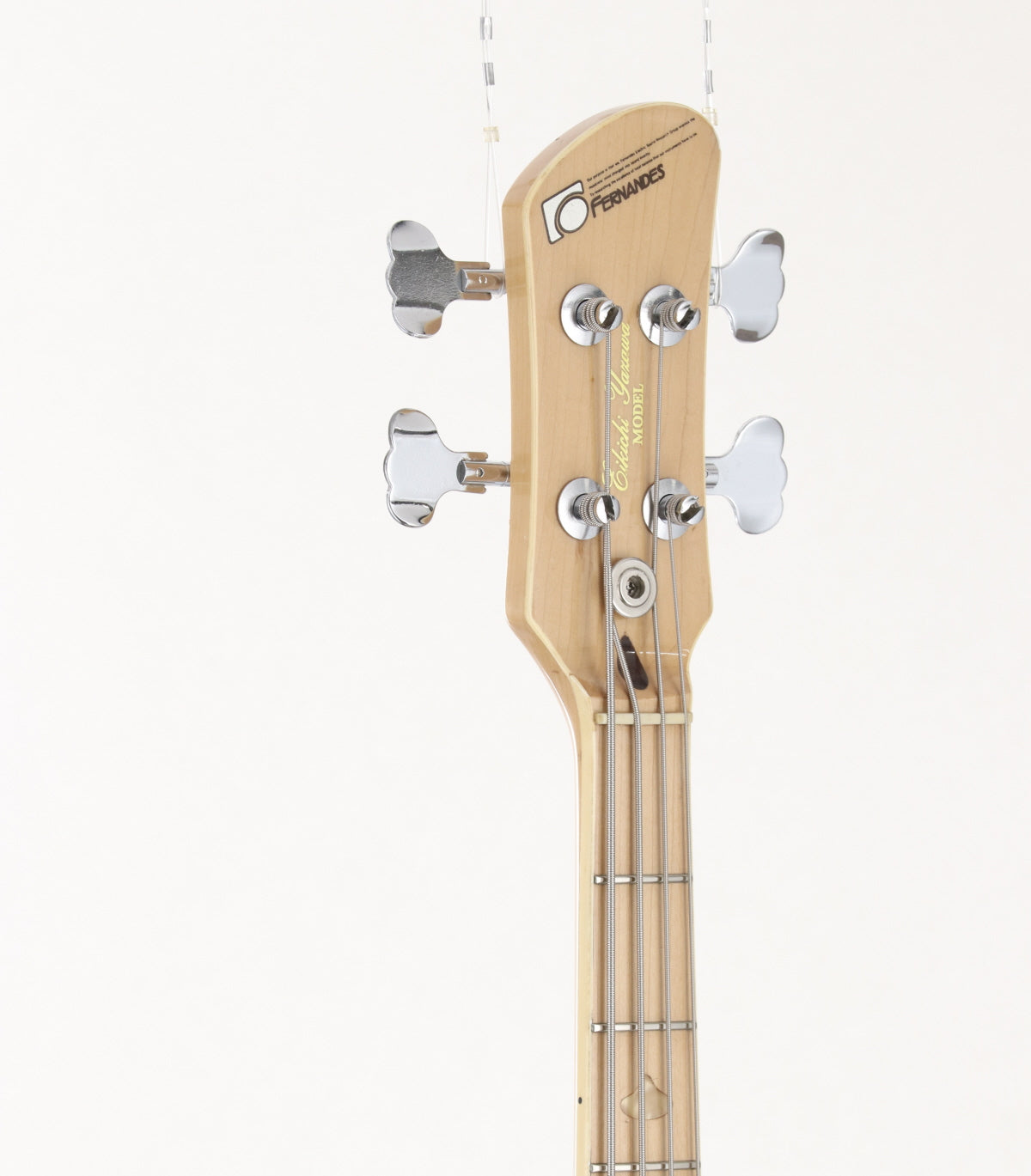 The FYB-70, nicknamed the "Biwa Bass," was named after Eikichi Yazawa, the first Japanese guitarist to play the FERNANNDES guitar brand, which established an era. The teardrop-shaped body is made of maple, and the neck is also maple. The head logo is the commonly known stone logo. Glover pegs are used for the pegs. Scale is 34 inches, nut width is about 40 mm, and fingerboard R is 7.25 inches. The strap button has been changed to a locking type (strap side parts are missing), and the master tone pot and output jack have been replaced.