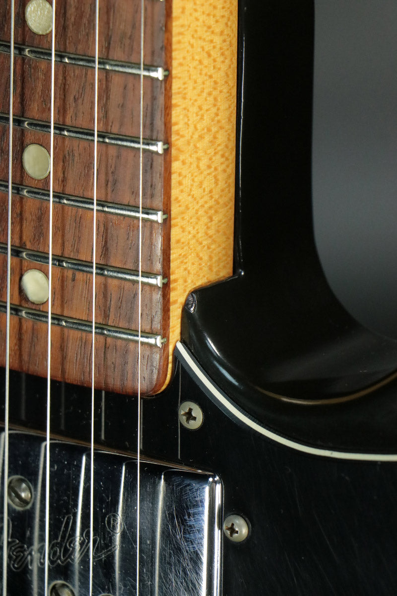 製造時期の検証はシリアルナンバー(S712007)、ポットデイト(1377730)、ソンブレロ型ノブ(1978年頃からブラックのSTノブへ移行)、ハードケース内外装の特徴などから1977年頃と考察できる感じでございます。