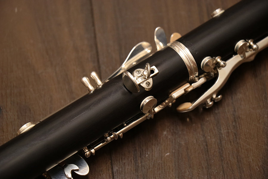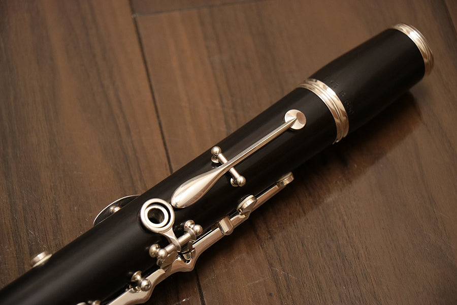 The E-13 is a popular instrument that inherits the sound of the R-13, the world standard model of the long-established Buffet Crampon brand of clarinets, but is easy to handle even for beginners, and even beginners who use relatively soft reeds can easily catch the pitch of the instrument Key parts are silver plated. Finger rests are movable. Selection report by Tadayoshi Takeda is included. Overall, there are some scratches from use. Faded logo has been repaired.
