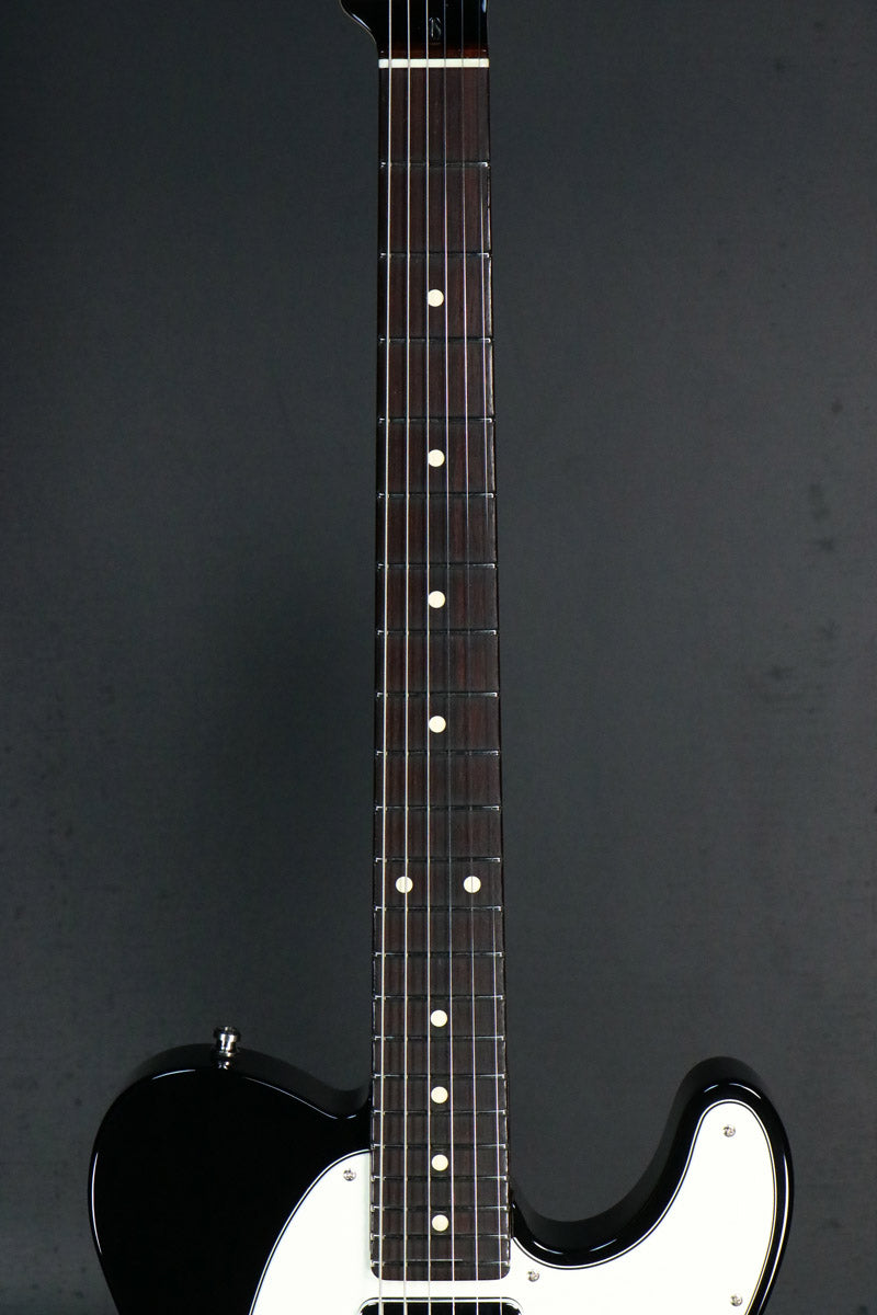 Nitrocellulose Lacquer(ニトロセルロースラッカー)塗装でNOSフィニッシュの2Pアルダーボディに、クォーターソーン・メイプルネック。指板はラウンドラミネート・ローズウッド。ネックシェイプは60 Style Oval"C"で、指板Rは12 Radius。フレットサイズはJumbo / 6100の22フレット仕様です。そして目を惹く人気のブラックカラーでマッチングヘッド!アルダーボディのラウンドラミネートローズウッド指板で、ジャンルを問わず対応可能なテレキャスターと言えるでしょう!!