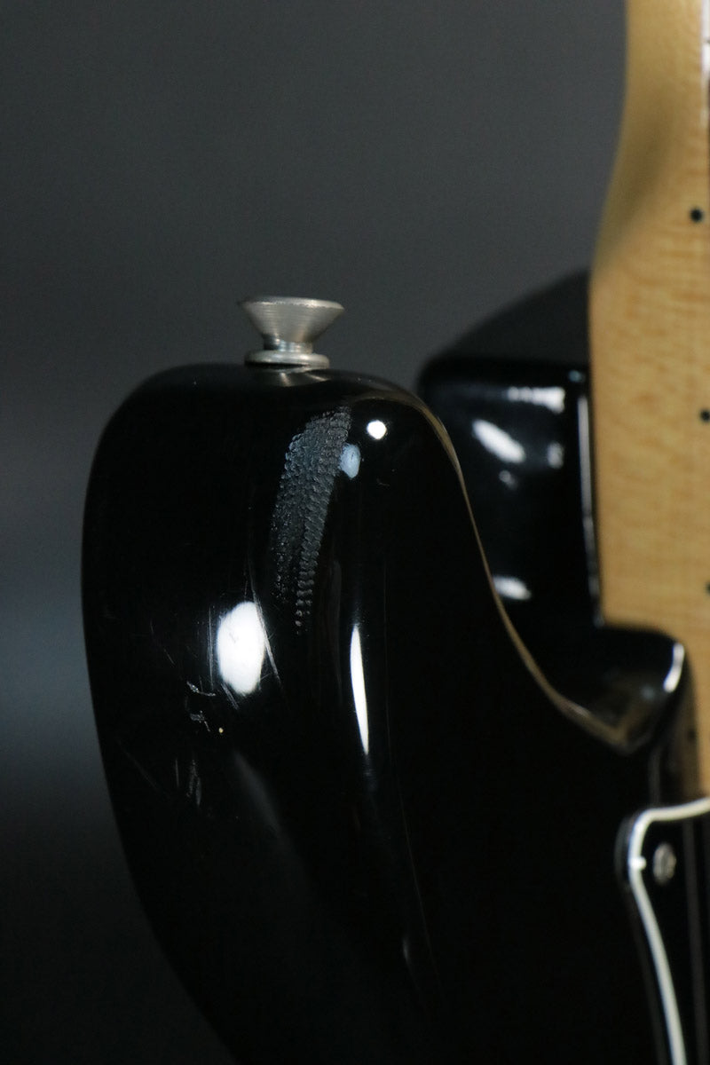 ボディはアッシュ。ヘッドシリアルとボディネックキャビティに貼られたシリアルシールは一致しております。両Potは最近のCTSに交換されており年式の特定に至りませんでした。この時期のヘッドシリアルは79年から84年まで多岐に渡ります。ネックはメイプルでラウンド貼りのローズウッド指板仕様。スケールは通常の25 1/2スケールでナット幅は約41mmです。3wayのスイッチはネック側シングル/ハムバッカー/ブリッジ側シングルと切り替えられ、後ろの2wayスイッチはハムバッカー選択時にシリーズ/パラレルの切り替えとなります。ボディネック側にシングルサイズのオリジナルキャビティがある事と、オリジナルピックガード裏面全体にアルミ箔があるので、79-81年製と判断しております。ナット&フレットはオリジナルです。