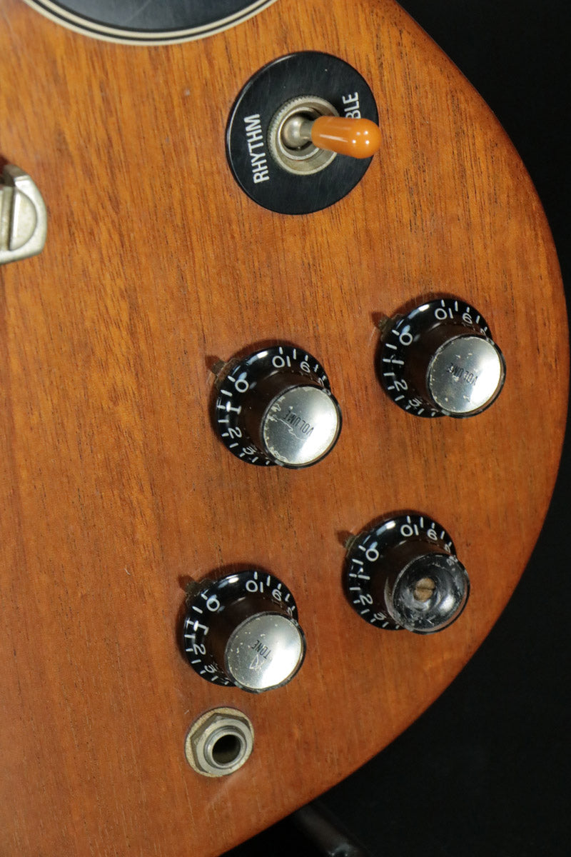 There are scratches, scuffs, line scratches, and dents all over the body. There is a light crack on the neck binding and weather checks on the paint around the crack. The overall finish has a cloudy look due to the basic VOS specification, but there are some shiny patches due to use, but they do not ruin the overall atmosphere. Also, each hardware is finished with a good atmosphere with the effects of VOS specification and rust and chrome corrosion over time. The metal plate on the rear tone knob is missing, but there is no problem with its operation.