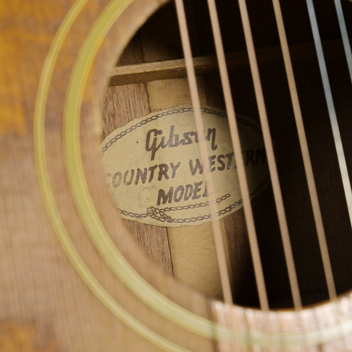 サザンジャンボのナチュラルフィニッシュモデルとして55年に誕生した『カントリー&ウェスタン』。J-45の上位機種らしくヘッドのクラウンインレイ、ダブルパラレログラムの指板インレイ、トップ&バックのマルチプルバインディングが特徴。62年にはスクウェアショルダー仕様に変更されます。