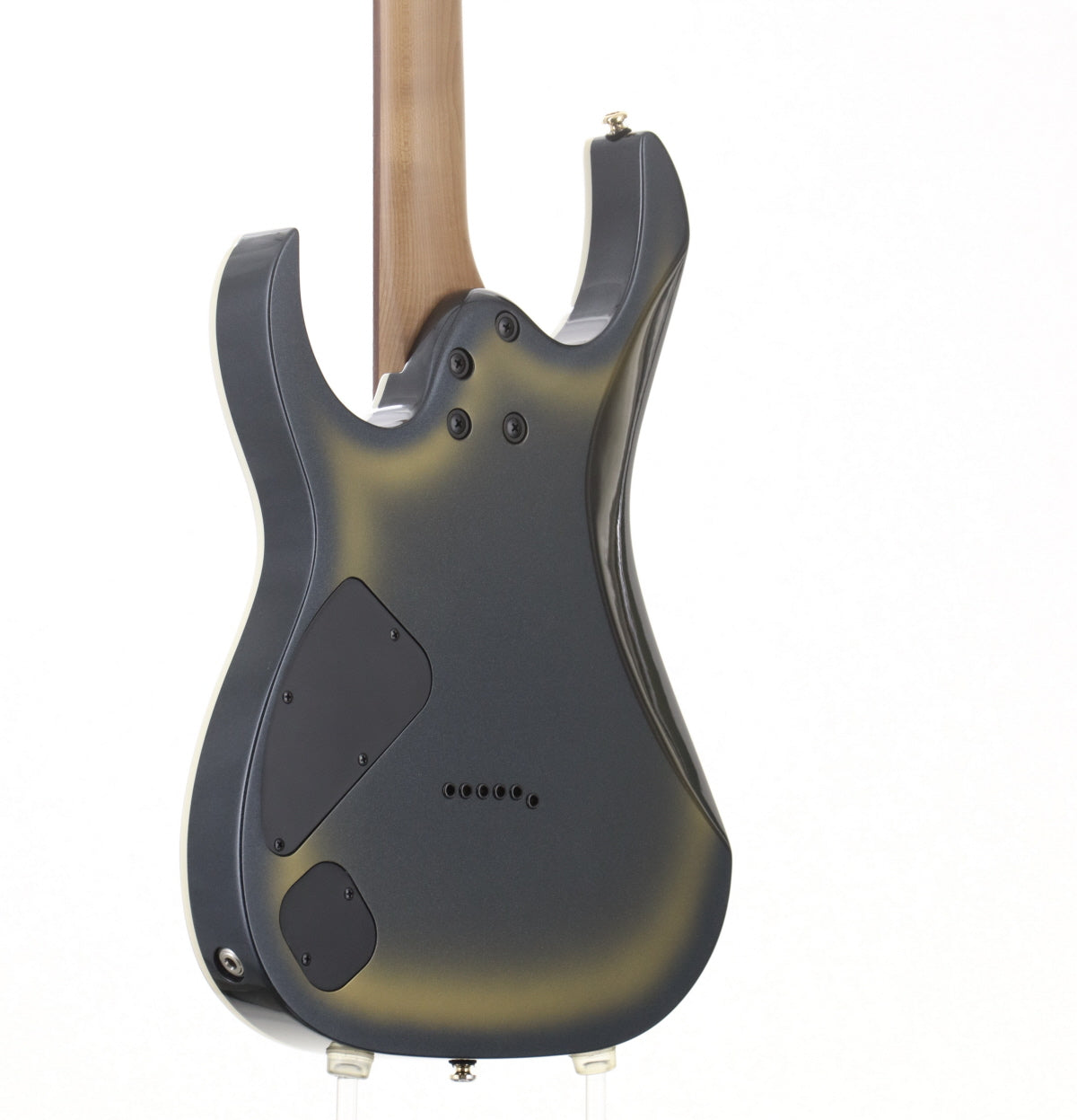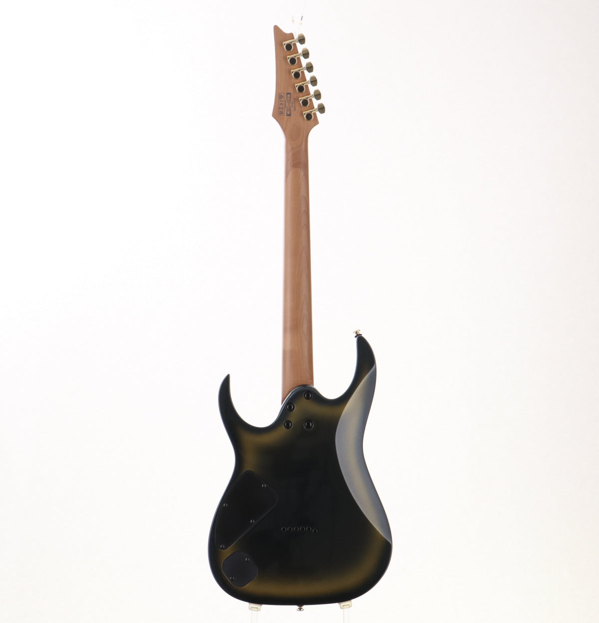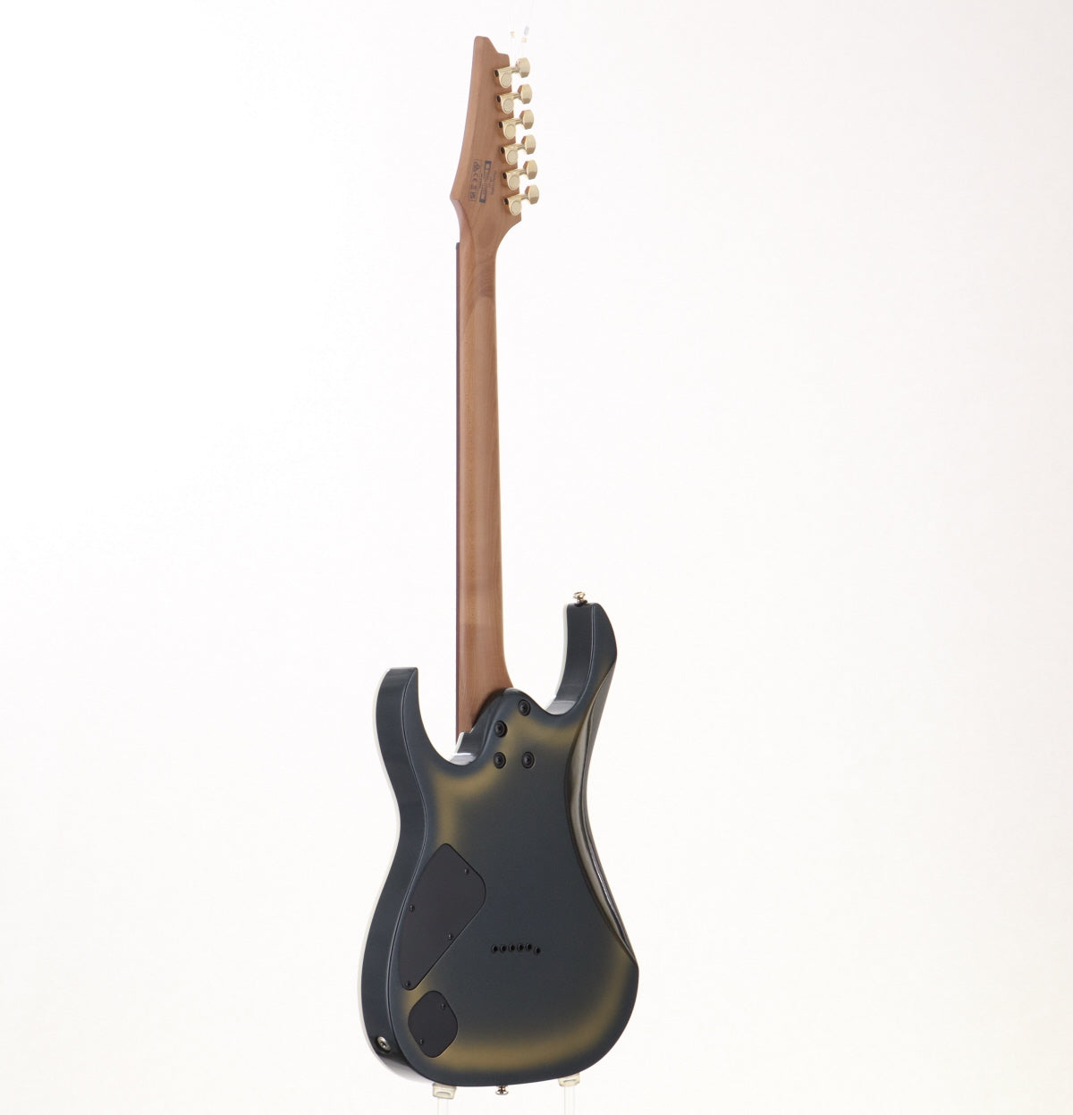 Judging from similar models, the neck shape is probably Wiazar III. The neck is moderately thin, which helps to support technical playing. The pickups are gold-covered DiMaggio Fusion edge pickups on the front and back.