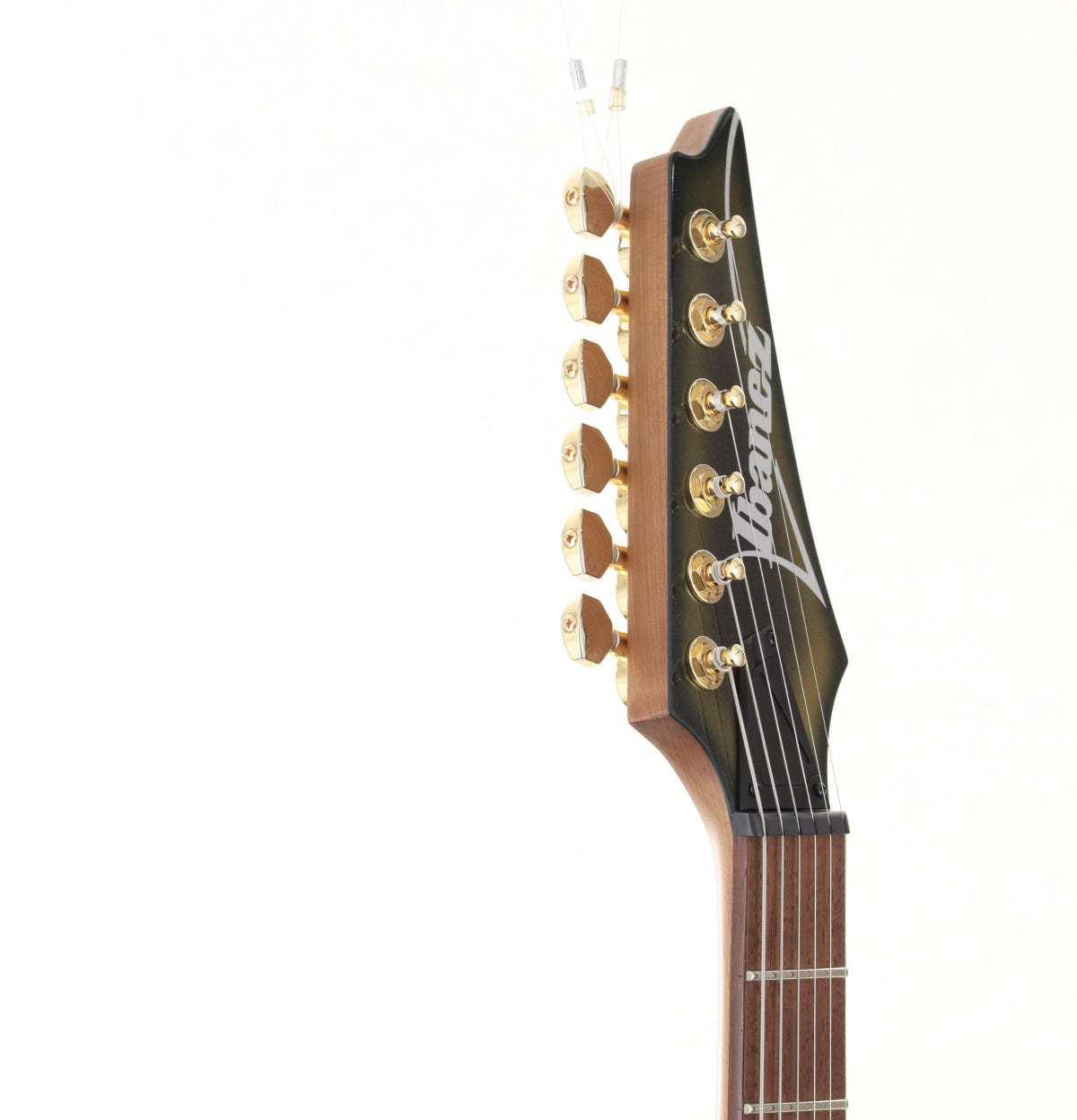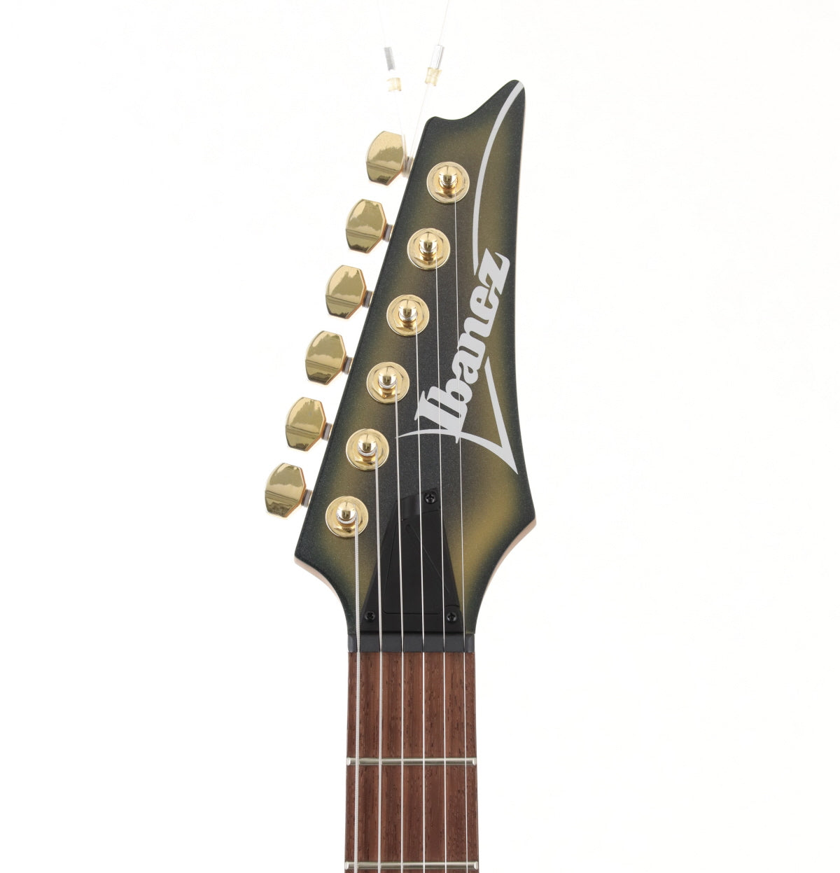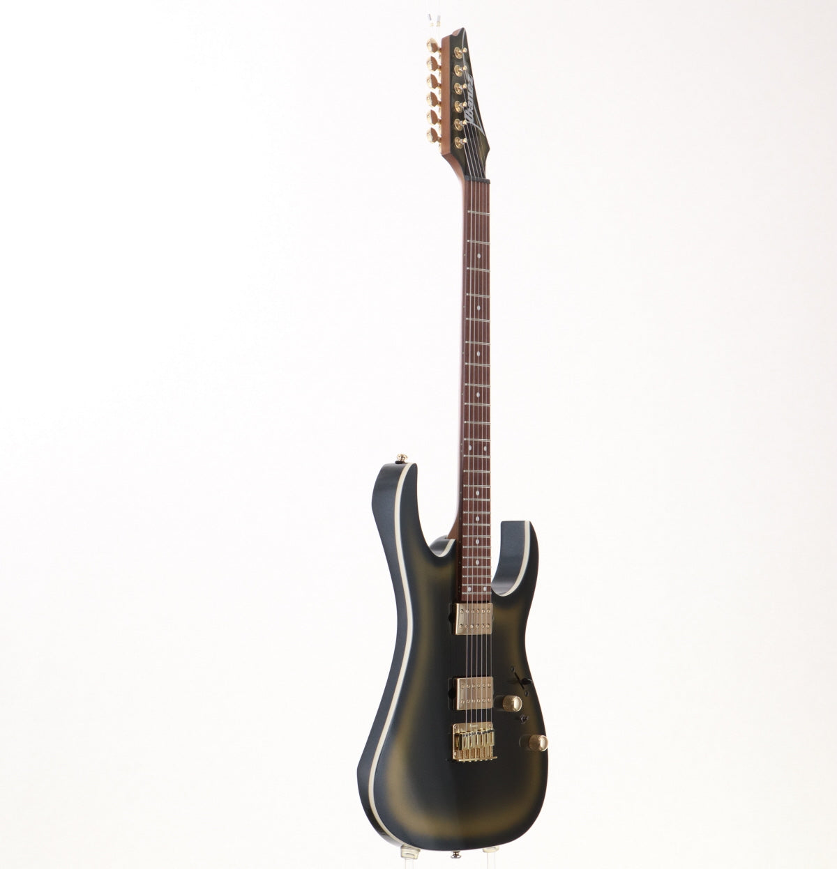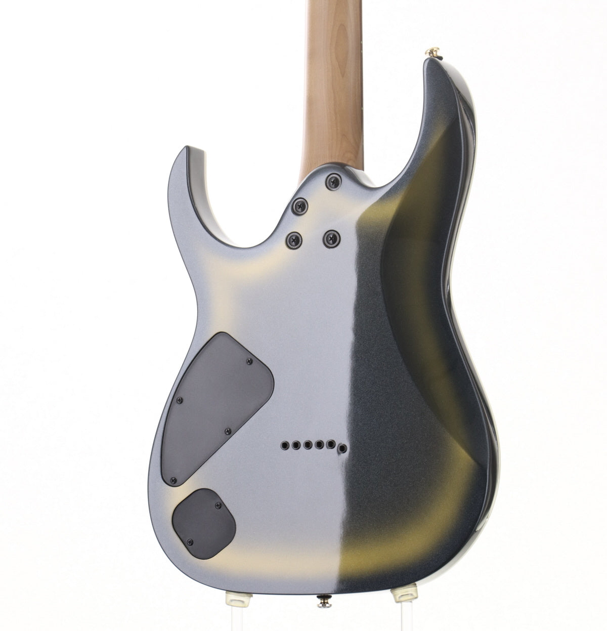 Judging from similar models, the neck shape is probably Wiazar III. The neck is moderately thin, which helps to support technical playing. The pickups are gold-covered DiMaggio Fusion edge pickups on the front and back.