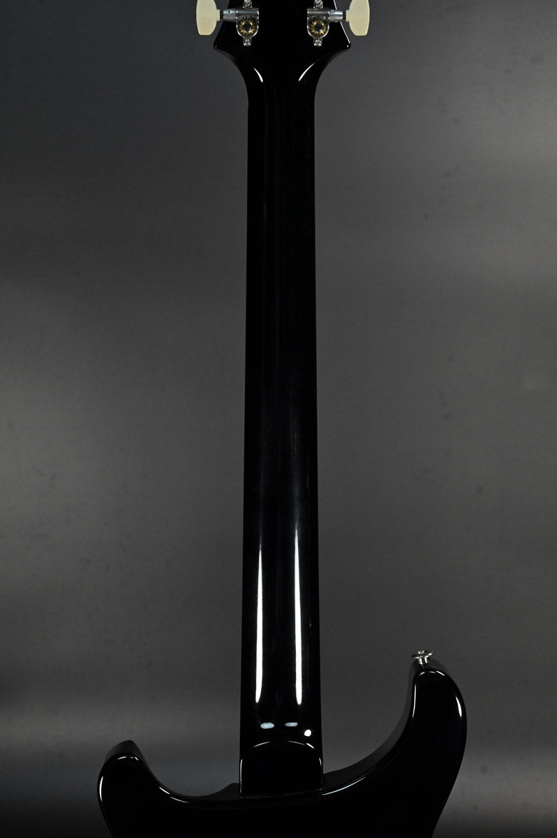 基本は清潔で美しいコンディションなのですが磨きキズが全域に発生しています。特にネックグリップ部位はハードケース・インナー生地で擦れたような細やかな痕跡が発生しています。また、PU付近の特定部位にピック・スクラッチの痕跡がございますが、いずれもフィニッシュカラーが黒っぽい濃紺色なので目立つ傾向かと。