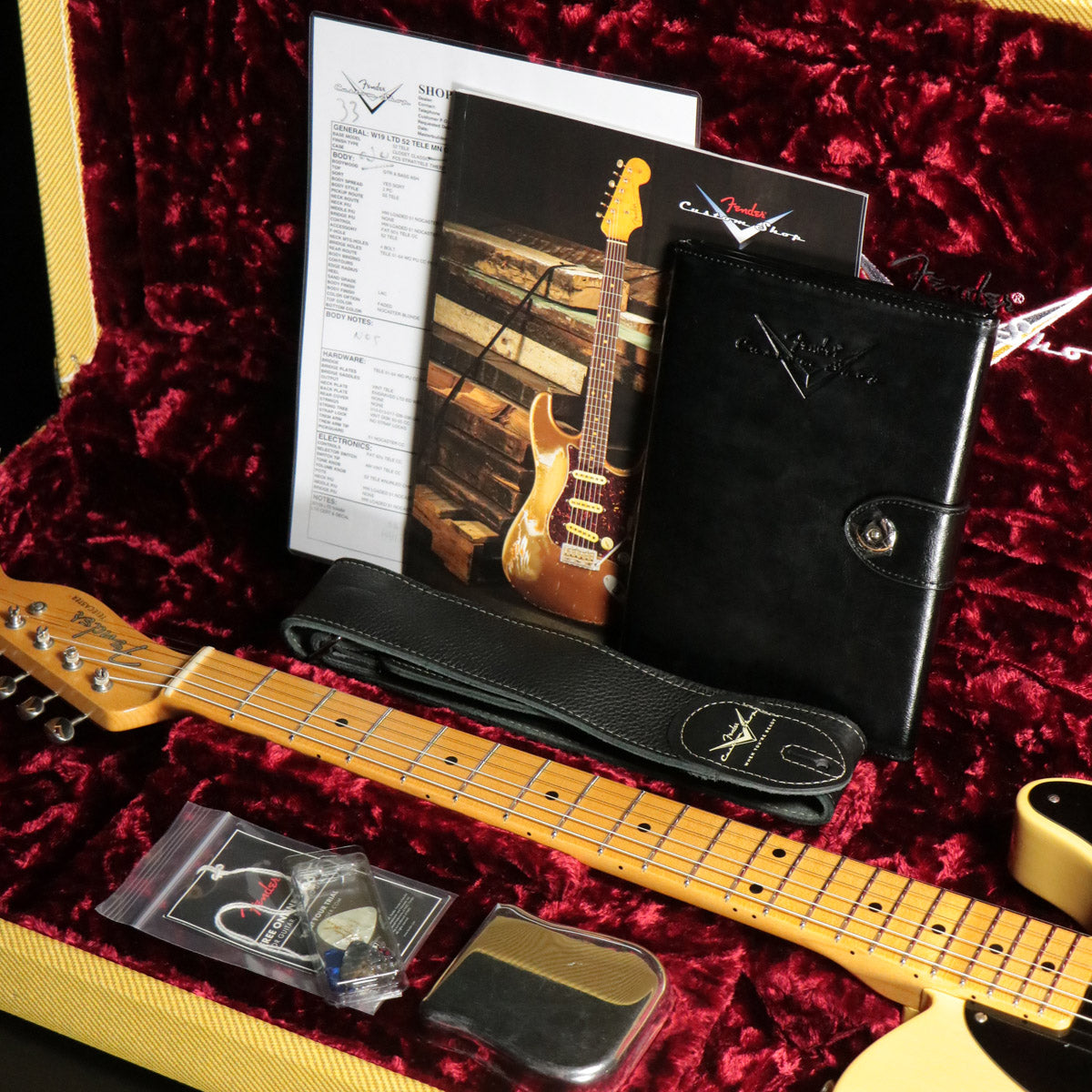 付属品カスタムショップ証明書、スペックシート、ブリッジカバー、未使用カスタムショップ・ストラップ、英文オーナーズ・マニュアル取扱説明書、HC鍵